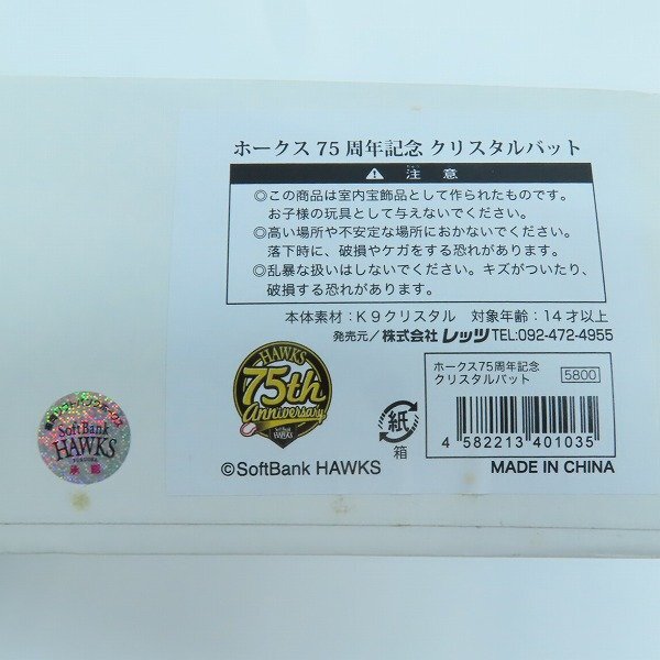 | SoftBank HAWKS/ソフトバンクホークス 球団創立75周年記念 クリスタルバット /080 | |||||||||||||||||||||||||