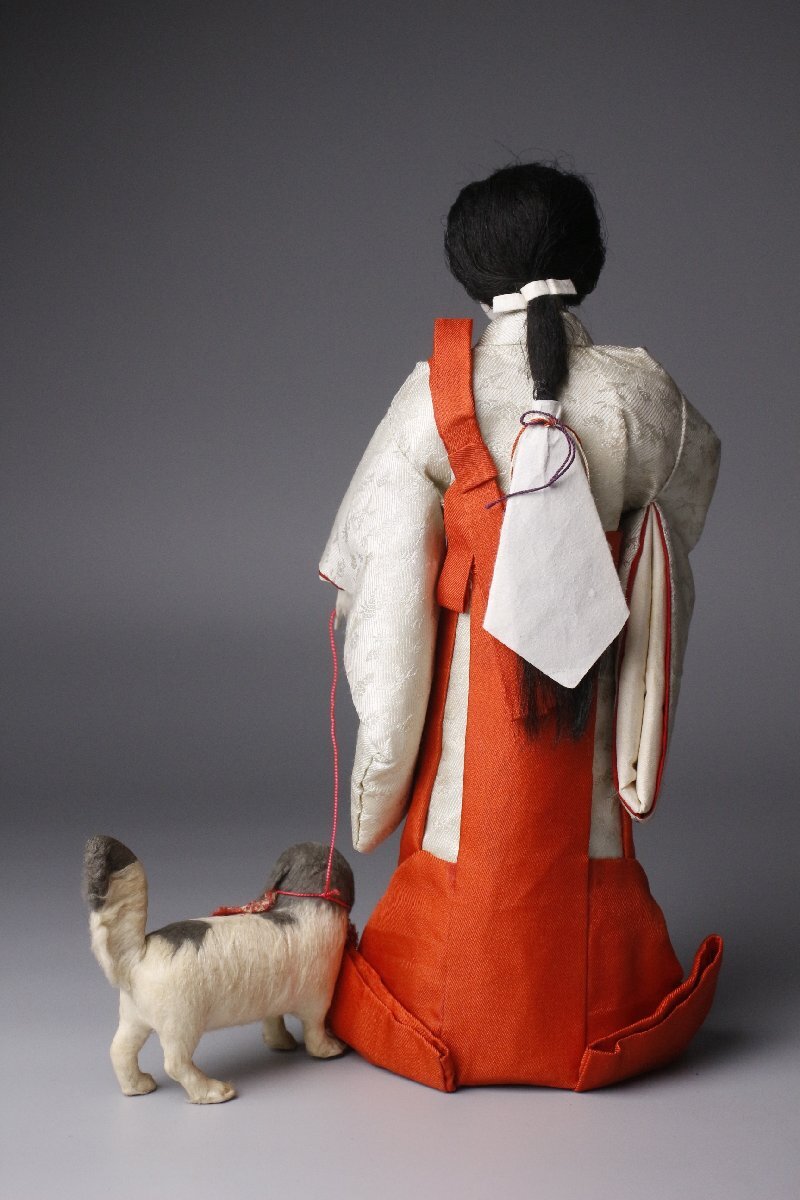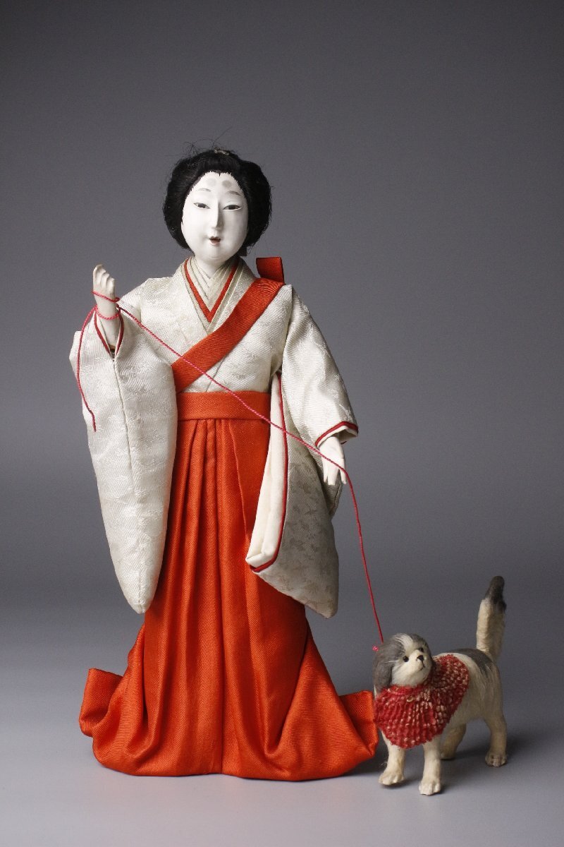 * * * 商品詳細 * * * ここでしか出逢うことのできない唯一の美をご紹介させて頂きます。 「官女狗曳」は、日本の伝統的な雛人形で、 本品は大腰袴を着用し、襷をかけた高級官女が、座敷犬である狆を連れて散歩させている姿を模した人形です。 主に明治中期から昭和初期にかけての雛飾りに添えられており、 江戸時代に主に宮中や大名家などの高貴な人々に愛玩動物として飼われていた狆を 散歩させるのが流行していた様子が反映されています。 スッキリとした整った顔立ちの官女が赤い紐を手に巻き付け、 その先には愛らしい表情の狆が斜め上を見上げている様が リアルに表現されています。 当時の日本の文化や生活様式を伝える歴史的な資料としても貴重な逸品を この機会にぜひご堪能下さい ■商品内容/人形、箱 ※写真にあるものが全てです。 ■サイズ/女官:横12.5cm×縦26cm×奥行6㎝ 犬:横9㎝×横7.5㎝×奥行2.5㎝ 箱:横30.5cm×縦17..5cm×奥行18㎝ ■状態/経年による傷み、スレ、傷、焼け、シミ、剥げ、欠け、割れ、毛に傷み、 箱にスレ、小傷がございます。 ※写真にてご確認、ご了承の上ご入札下さい。 ![]() * * * 支払詳細 * * * Yahoo!かんたん決済 * * * 発送詳細 * * * 入金確認後3営業日以内に発送致します。 ※直接引き取りも可能です。 60~160サイズにつきましては 佐川急便、ゆうパックのどちらかで発送いたします。 ゆうパック発送の場合、弊社の発送日から追跡サービスに問合せ番号が反映されるまで 約1日ほどお時間がかかりますのでご了承下さい。 * * * 注意事項 * * * 運送中の破損があった場合は速やかに当社までご連絡下さい。 保険を利用するのに受取連絡後に運送会社による現場での破損状況確認が必要となります。 勝手に返送されますと保険の適用外となりますのでご注意ください。 * * * * * * お問い合わせ:082-236-8669 |