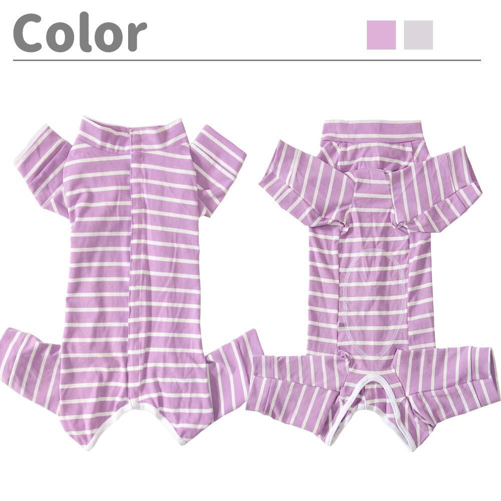 KUVEELA PET 犬 術後服 術後ウェア 介護服 オス メス 避妊 離乳 傷口保護 長袖 抜け毛対策 虫よけ対策 小型犬(パープルボーダー、XS)