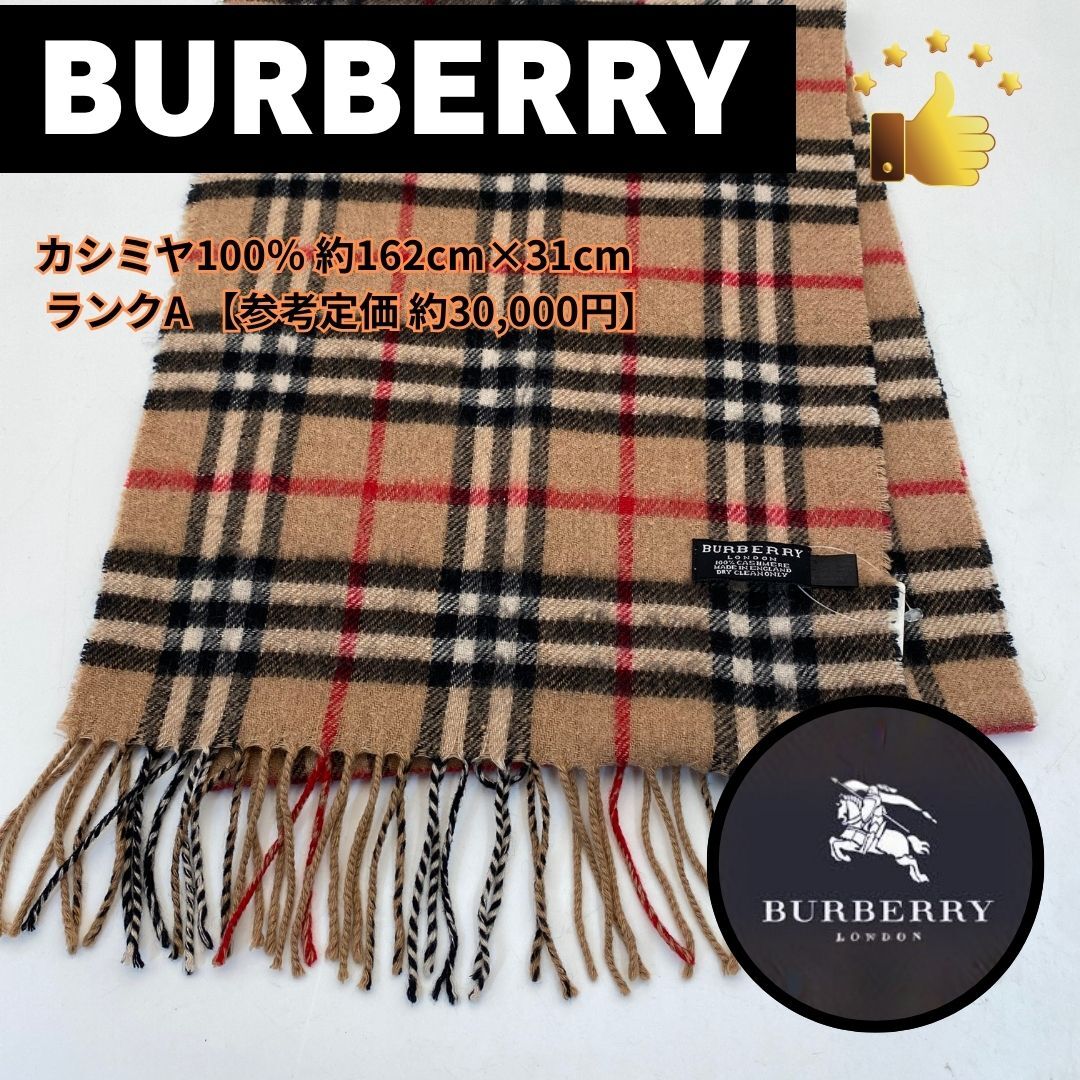 BURBERRY バーバリー ノヴァチェック柄 カシミヤ 100% マフラー ブラウン 162×31cm ランクA 男女兼用 7-10-1080