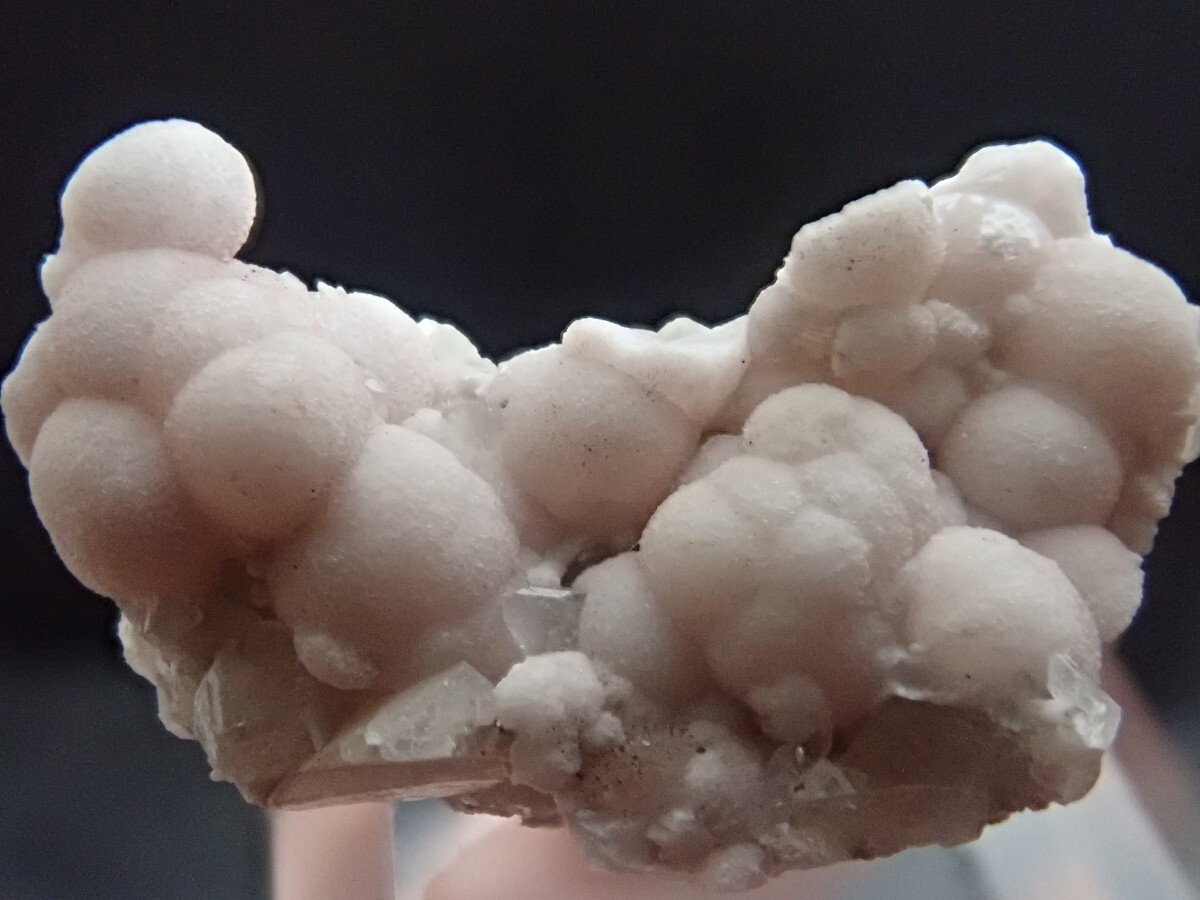 ブルトフォンテナイトは、元々はデュトスパナイトであり、淡いピンクの球状鉱物です