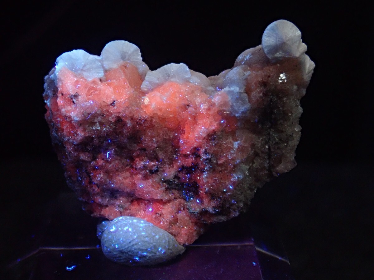 赤く蛍光する部分がカルサイトで、