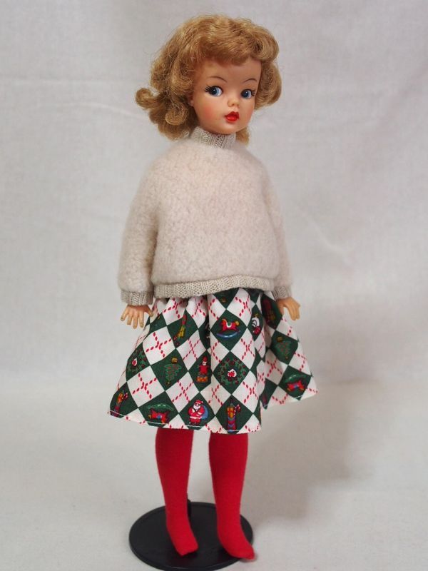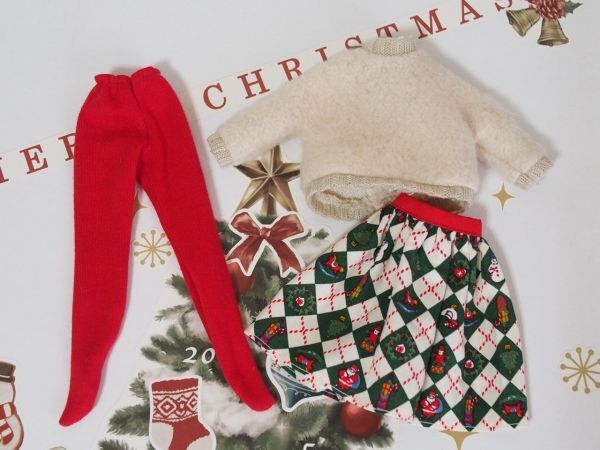 Doll Dressing♪ハンドメイド タミーちゃんサイズお洋服セット人形アウトフィット/タイツ/クリスマス衣装/ニット/スカート/ドール服/レトロ