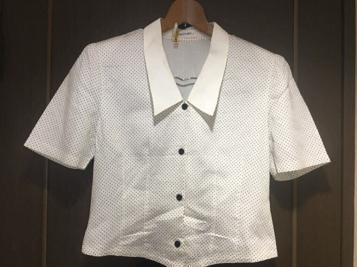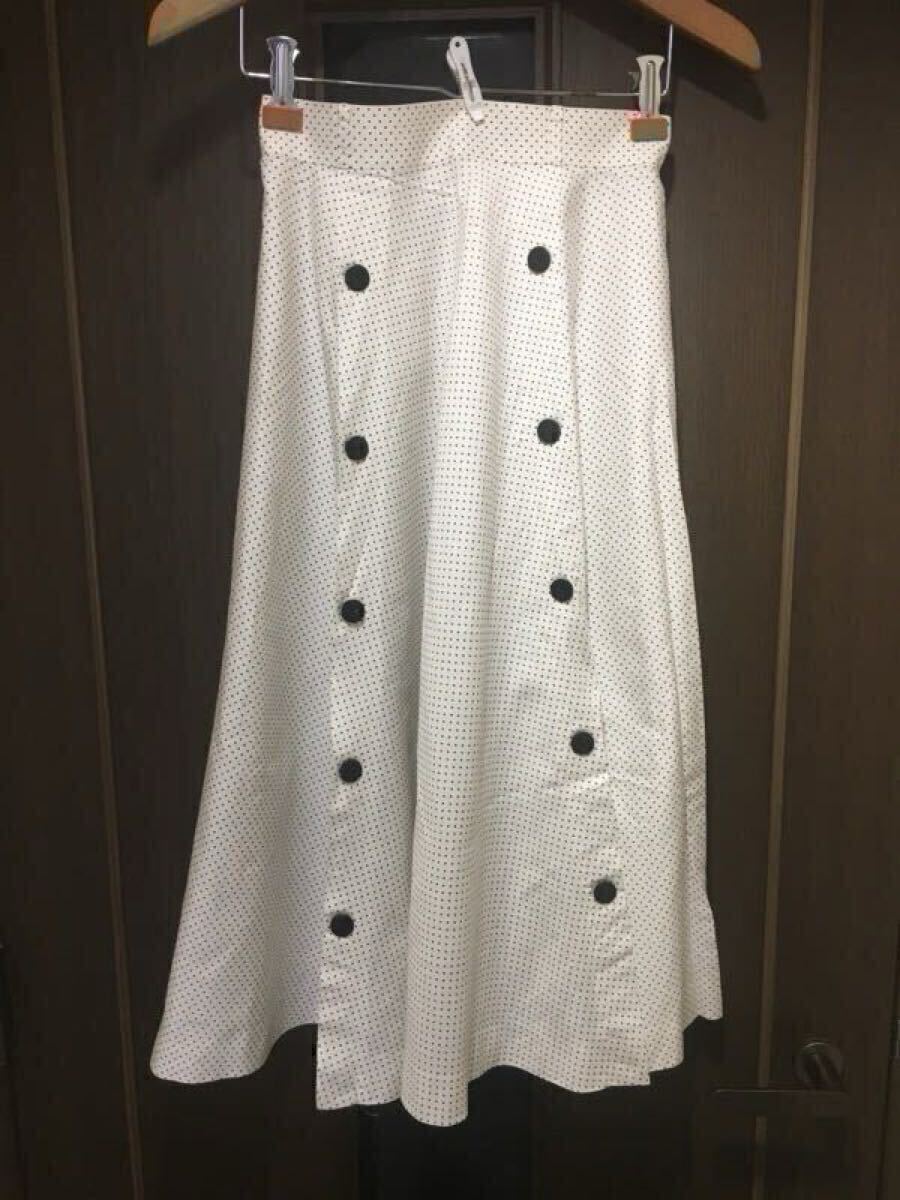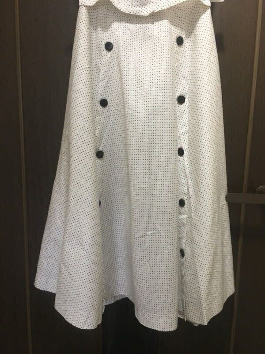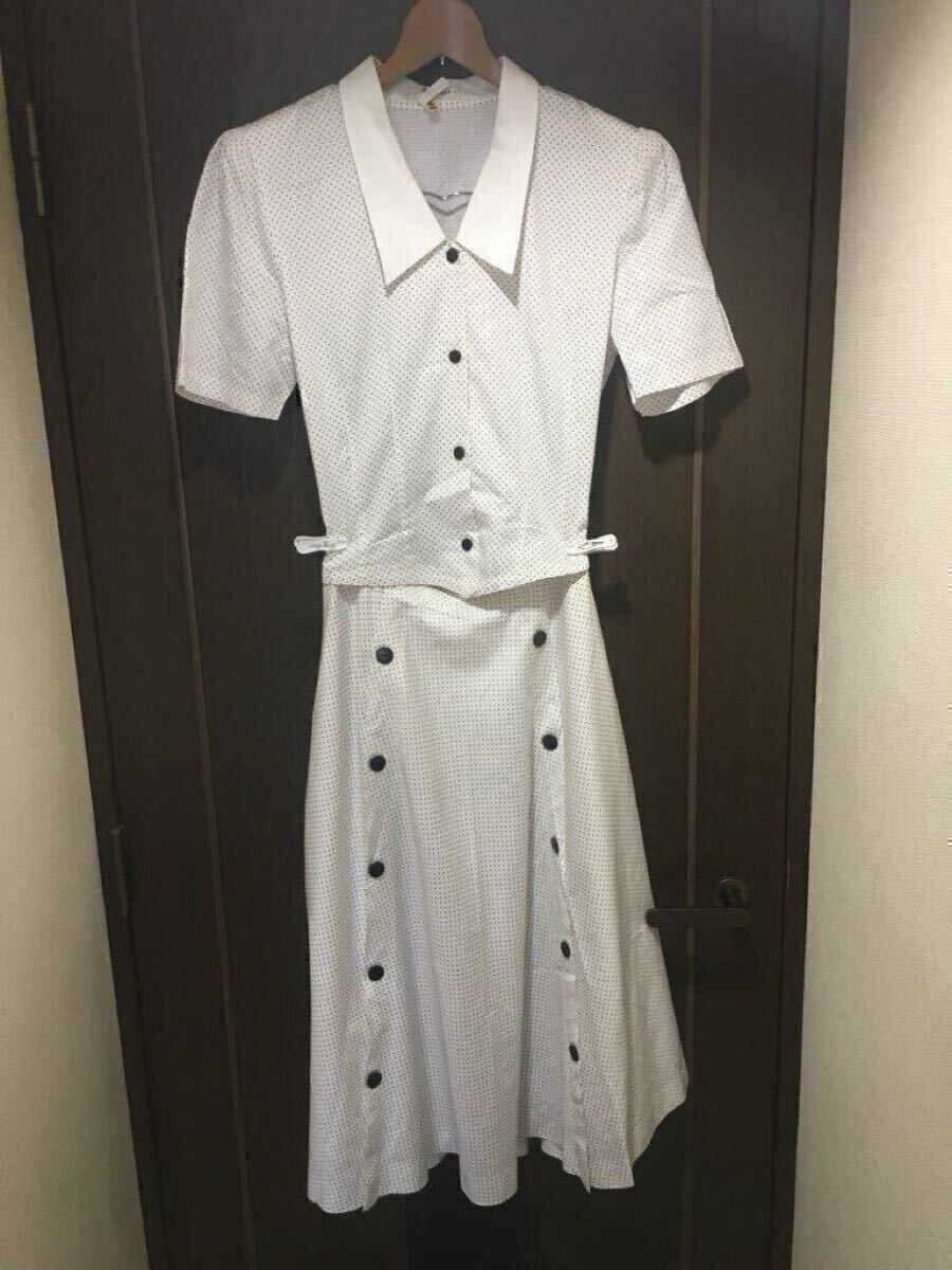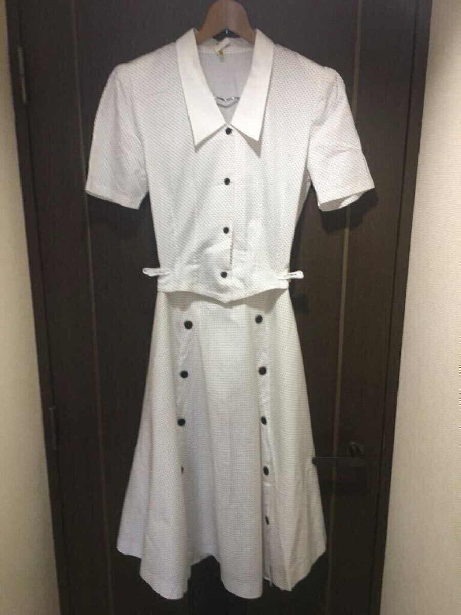 サイズ : 9号 M 上着部分= 身丈→ 46 ・ 胸囲(脇下~脇下一周)→ 90 ・ 肩幅→ 40 ・ 袖丈→ 26 / スカ-ト部分= スカ-ト丈→ 76 ・ ウエスト→ 63