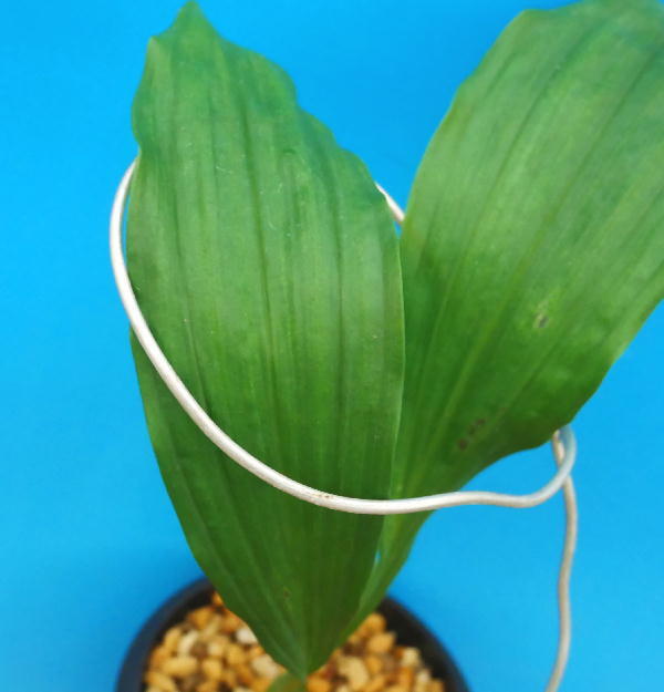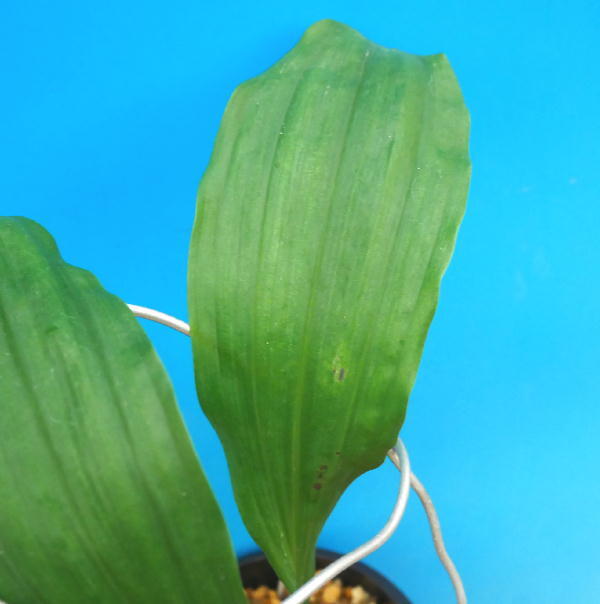 株の状態: バルブ→新葉26cmの2枚葉(1枚葉に小さな黒キズが少しあり)   ※です