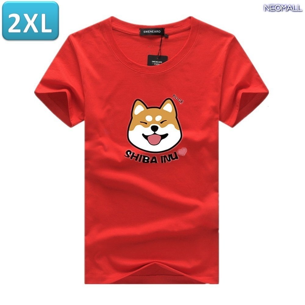 夏にピッタリ ☆ 丸首 半袖 Tシャツ【345】 レッド 2XLサイズ トップス シャツ シンプル イラスト シルエット 春夏
