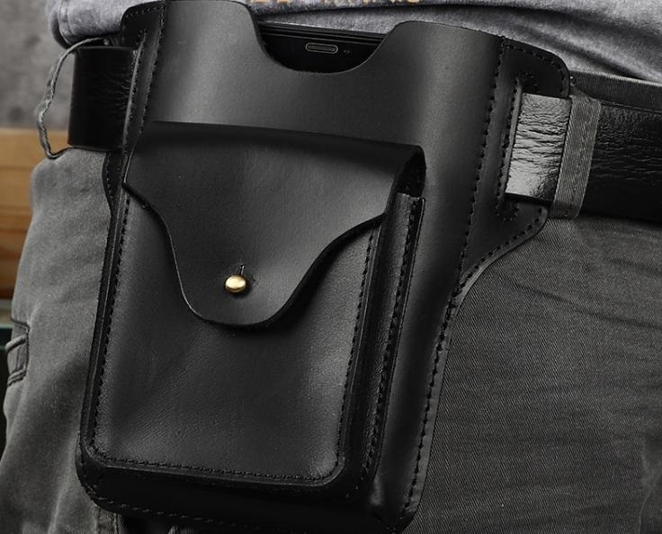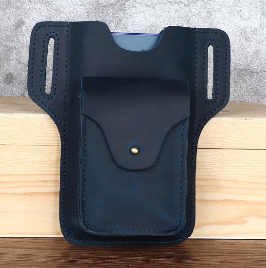 送料コミコミ☆ ベルトに通せる ウェストポーチ 本革 ネイビー 牛革 スマホ タバコ 【n225】