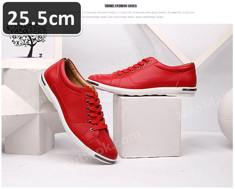 メンズ カジュアル スニーカー レッド サイズ 25.5cm 革靴 靴 カジュアル 屈曲性 通勤 軽量 インポート品【n039】