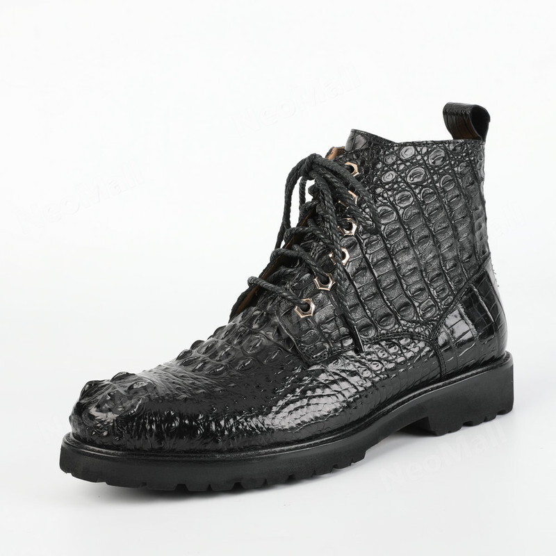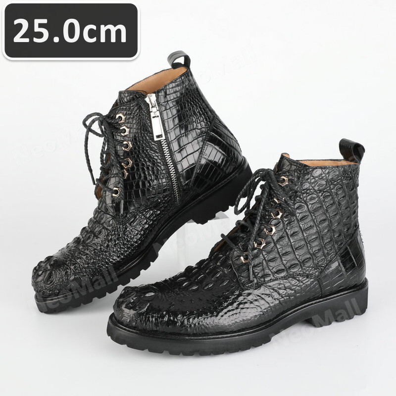 人気のクロコダイルレザー 超貴重 最高級 天然ワニ革 クロコダイル 靴 メンズシューズ 革靴 ブラック 25.0cm 【115】