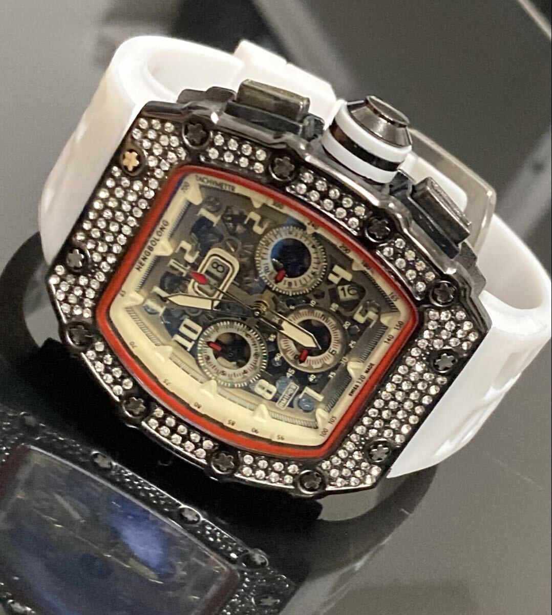 機能: クロノグラフ表示(ストップウォッチ機能)、カレンダー、生活防水