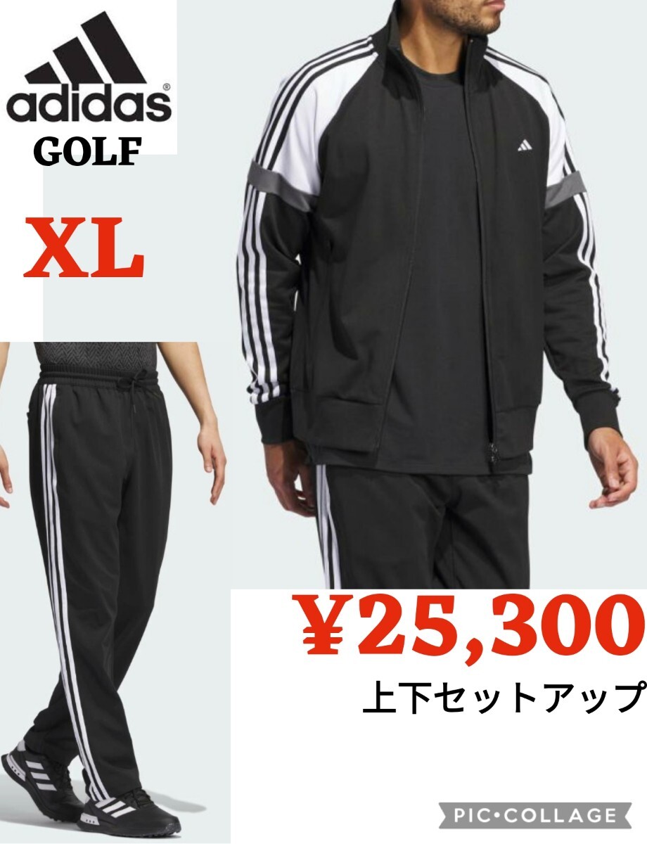 【新品】adidasアディダスゴルフ●ツイストニット レトロ トラックジャケット+パンツ 上下 パフォーマンス メンズ ウェア IW1422 JTX76 IW1423 JTX75●ブラックXL●25300円●公式以下特価●送料込み●176