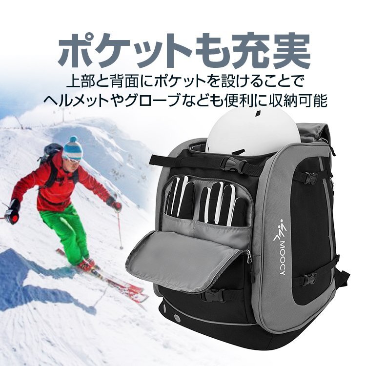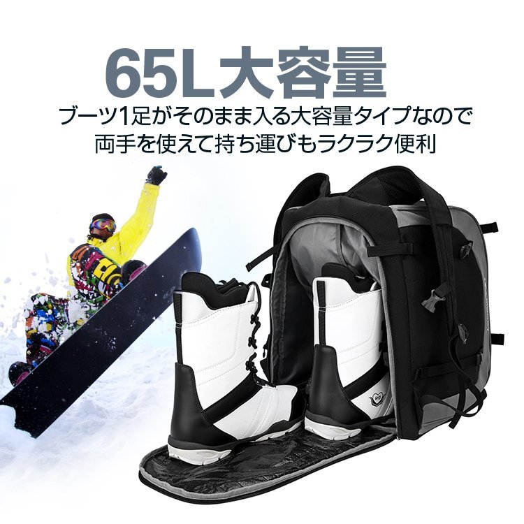 ◆スキーリュック 大容量65L 撥水素材 スキー板/スノーボードも取付可能 ポケット付き グローブ ヘルメット ゴーグルも収納可 スキーギアバッグ スノボ スキーブーツバッグ SKRSK65L