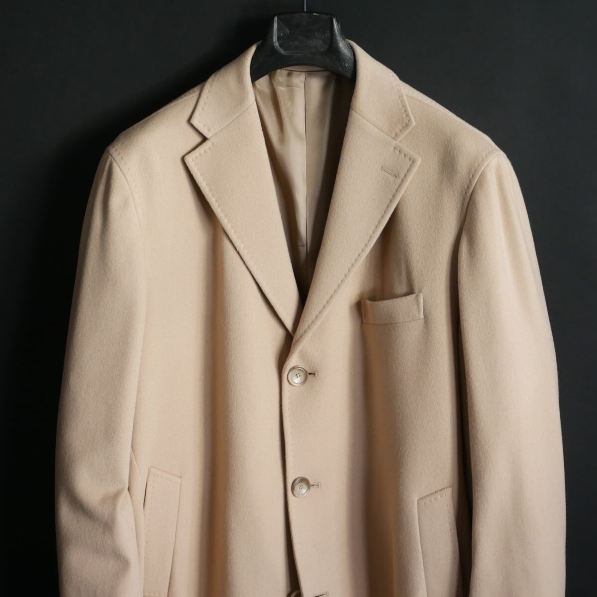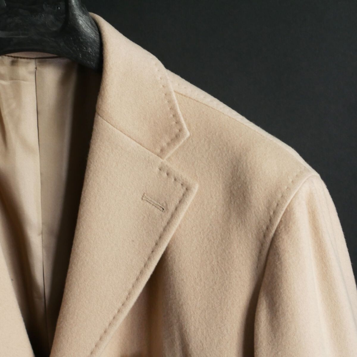 ●イタリアの名門ブランド「TAGLIATORE(タリアトーレ)」より、繊細なステッチワークとエレガントなシルエットが際立つ、上質なチェスターコートとなります。イタリアンテーラリングの美学を極限まで高めた同ブランドらしく、構築的でありながら柔らかく包み込むようなラインが魅力で、着用時の立ち姿が格別に美しく映える逸品です。上品なベージュカラーが洗練された大人の雰囲気を纏い、冬のコーディネートを格上げいたします。 ●生地はカシミヤ10%をブレンドしたウールファブリックを採用し、しっとりとなめらかなタッチと品のある光沢を備えております。高密度ながら柔らかさが際立ち、体へ自然に馴染むドレープ感は、タリアトーレならではのファブリック・カッティング技術の高さを実感いただけます。保温性も優れており、冬の街中を軽やかに、そしてエレガントに過ごせる上質なアウターでございます。 ●ラペルやポケット縁へ丁寧に施されたステッチが非常に美しく、ハンドワークの立体感がコート全体の表情を上質に仕上げています。フロントは3ボタン、袖口は4ボタン仕様となっており、細部の作り込みにも隙がありません。背面はセンターベントで動きやすく、裏地にはキュプラ100%の滑らかな素材を使用し、着脱も快適でございます。加えてスペアボタンも付属し、長く安心してご愛用いただけます。 ●ビジネスシーンはもちろん、ニットやデニムとのカジュアルなコーディネートまで幅広く対応できる万能な一着で、タリアトーレのテーラリングの美しさを存分に味わえるコートです。流麗なシルエットと極上素材が織り成す、大人のためのエレガンスを体現した逸品となっております。 ●表内ポケットあり。総裏生地付。後ろ裾スリット入り。スペアボタン付き ●色:こっくりとしたベージュ系 ●素材: 表地:ウール90%、カシミヤ10% 裏地:キュプラ100% ●サイズ:54 *54サイズの方向けとなり、また52のや大きめ50の方もご検討ください。日本サイズ概ねXXLサイズ辺りとなりますが、下記詳細サイズもご確認の上、よろしくお願いいたします。 ●詳細サイズ(cm)置いた状態で: 肩幅:48.5(右肩端~左肩端の直線距離) 身幅:59(右脇下~左脇下の直線距離) 袖丈:67.5(肩の縫い目~袖先) 着丈:96(襟の付け根~裾まで。襟の幅を含んでいません) *袖は本切羽手前の処理です。 袖の長さが丁度の場合→そのままご利用ください。好みにより、お直し店などでボタンホールを貫通し、本切羽仕様にして頂くことも可能です。 袖丈詰め頂く場合→ボタンホールは、切り込み部分がまだ貫通されていませんので、ボタンホール刺繍を抜糸処理頂き、位置をずらすことにより、袖の先端からボタンまでの間隔を確保したオリジナルデザインに近い状態で、丈詰め頂けます。お直し店にてご自身の袖丈サイズに合わせてご調整頂いて下さい。その際、本切羽仕上にも出来るタイプです。 詳細サイズご参考 ※大よその採寸となります。 ※お品物はタイトルにございますもののみとなり、着合わせのお洋服や小物などがございましても、それらは含まれません。 ※素材の特性上、多少のことはご容赦くださいませ。 ※ご質問は、必ずご入札前にお願いいたします。(ご入札後、ご落札後の取引ナビからのご質問はお避け下さい) ☆☆☆ご連絡・お支払い(Yahooかんたん決済)☆☆☆ ご落札後24時間以内に、取引ナビからご連絡(お名前・ご住所全て。*サイズ選択いただけるオークションはサイズのご連絡も含め)・Yahooかんたん決済可能な方。 *銀行振込の場合は翌営業日、コンビニ決済はご落札後2日目の午前中まで、お支払いをお済ませ下さいませ。 電話応対は、一切致しておりません。取引ナビをご利用下さい。 ☆☆☆受け取り連絡☆☆☆ 製品到着後24時間以内。*出来る限り、到着日当日に受け取り連絡頂きましたら幸いです。 *配達日指定ご希望の際は、ご落札後、最長4日以内に「受取連絡」ができるようお願いします。(北海道・沖縄・離島の方は5日以内) *特別に記載をしました際には、そちらを優先させていただきます。 ☆☆☆同日に2点以上のご落札の場合☆☆☆ 「まとめて取引」を、最初にご選択ください。 *「まとめて取引」を、お届け情報などご入力前にご選択ください。同梱発送となり、一品分の送料のみとなります。 *「まとめて取引」をご選択されなかった場合、出品者側では送料訂正できませんので、予めご了承くださいませ。 新規IDの方は、こちらを必ずご覧くださいませ ☆☆☆ご入札及びご落札のキャンセルはしていただけません☆☆☆