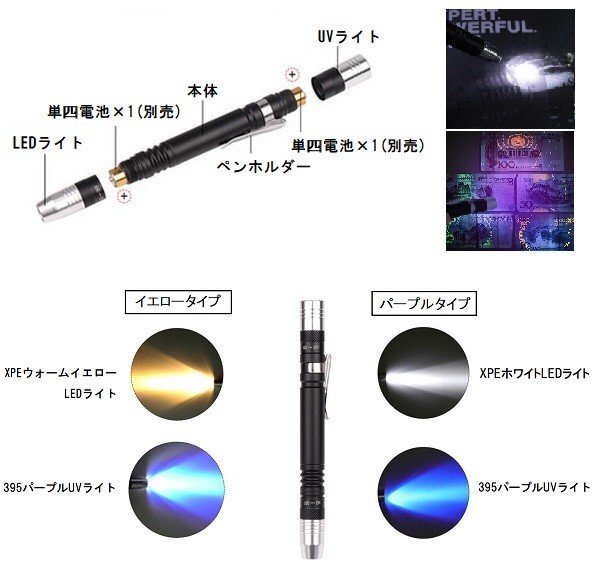| LEDライト&紫外線ライト 2種搭載 ペン型LEDライト パープル |