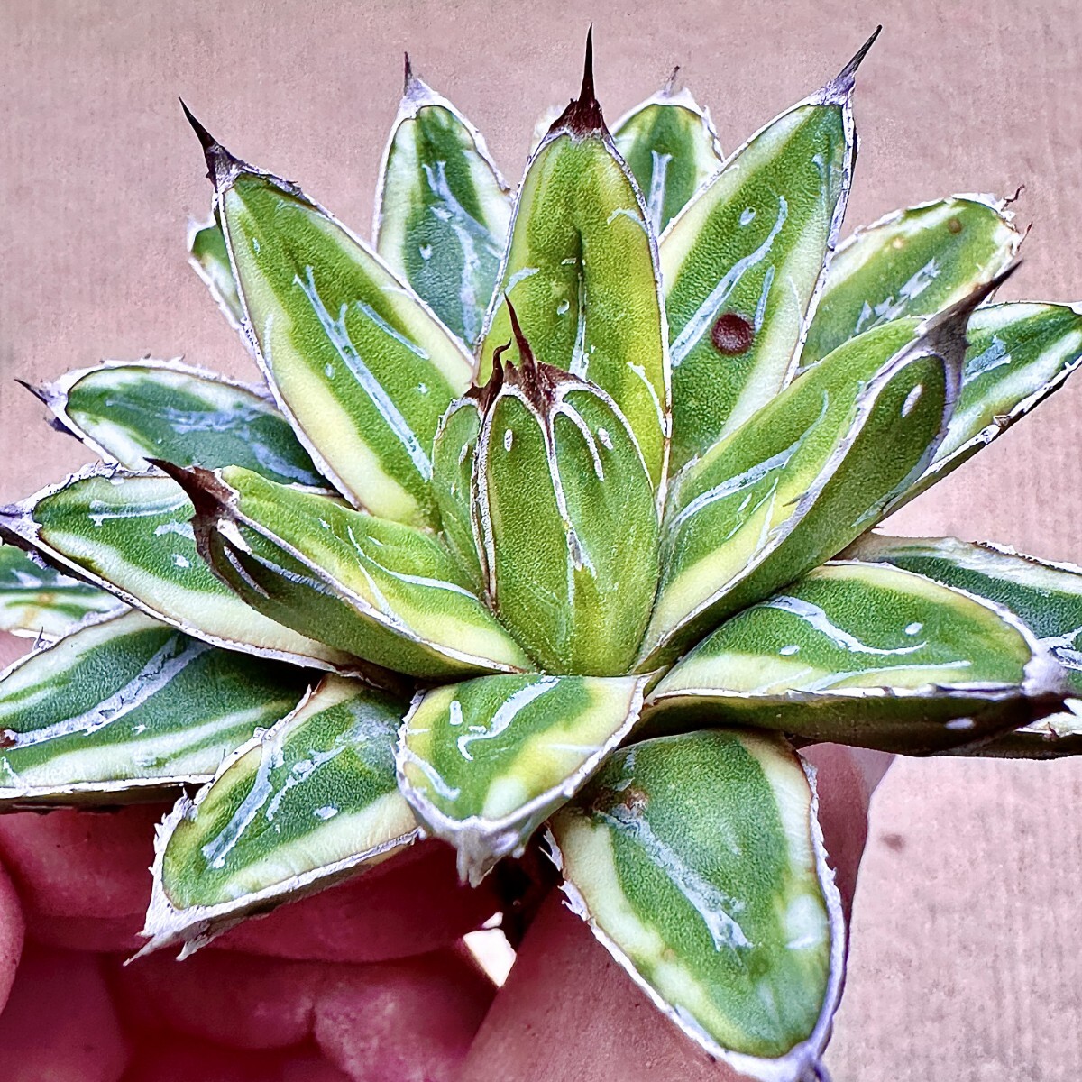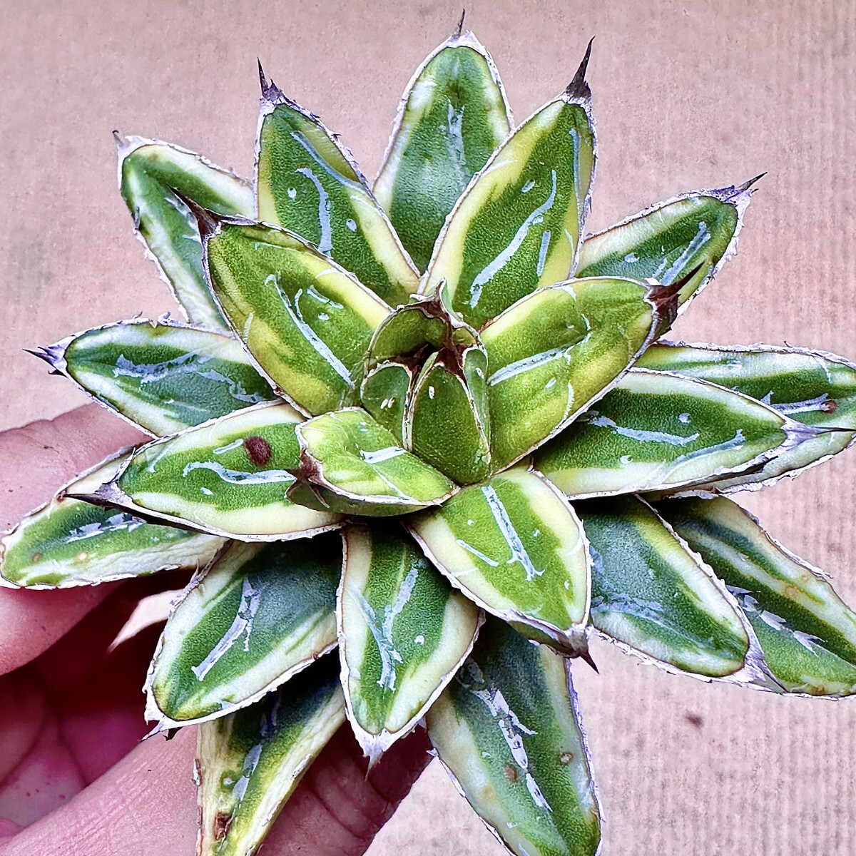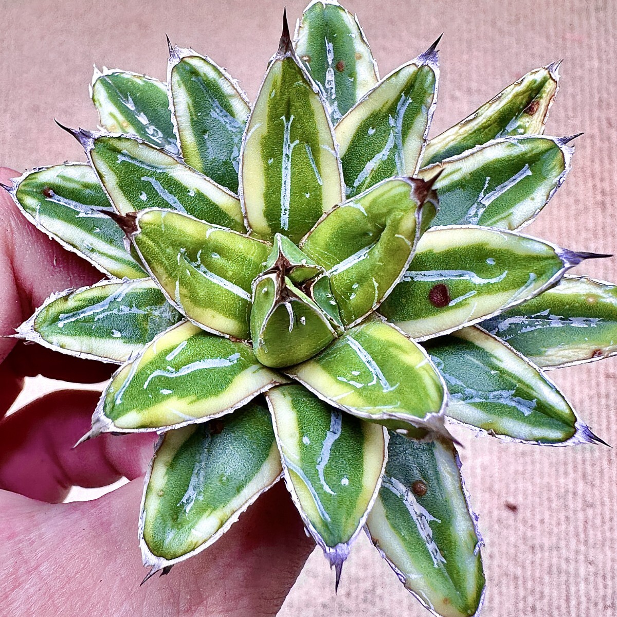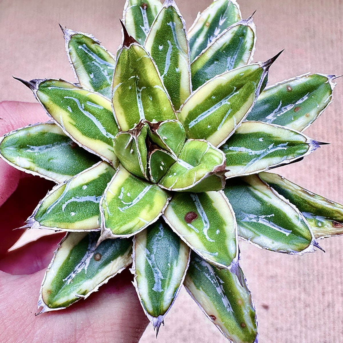 【Lj_plants】Q899 多肉植物 アガベ 羽斑笹の雪 鮮明錦 極上錦 覆輪錦 極上株