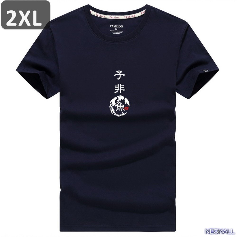 夏にピッタリ ☆ 丸首 半袖 Tシャツ【450】 ネイビー 2XLサイズ トップス シャツ シンプル イラスト デザイン 春夏