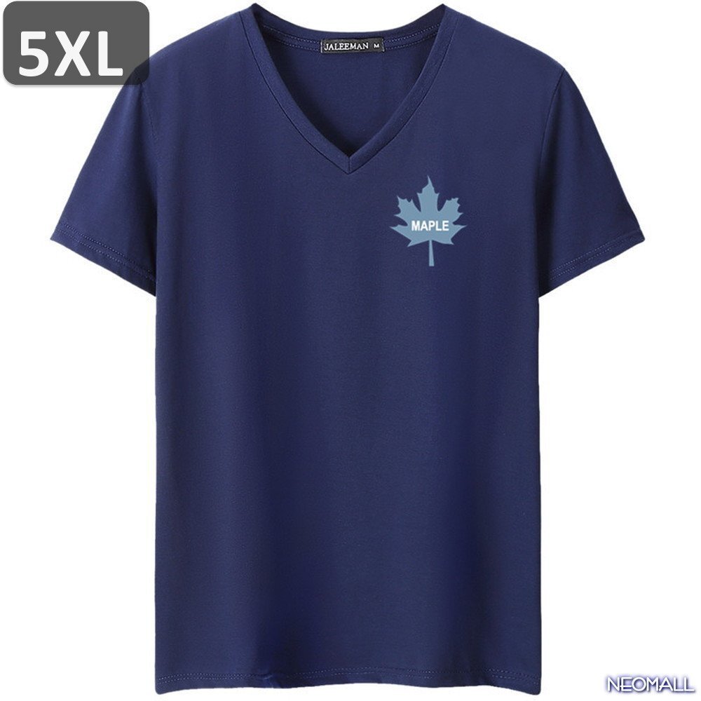 夏にピッタリ ☆ Vネック 半袖 Tシャツ【455】 ネイビー 5XLサイズ トップス シャツ シンプル イラスト デザイン 春夏