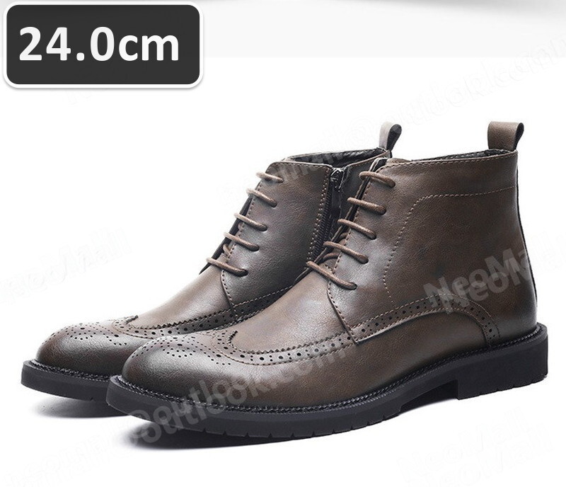 サイドジッパー付 PUレザー メンズ シュートブーツ ブラウン サイズ 24.0cm カジュアル 屈曲性 通勤 軽量 インポート品【n029】