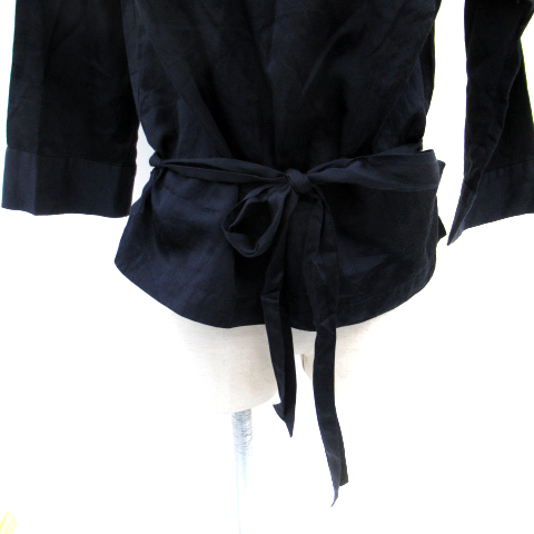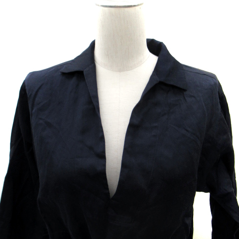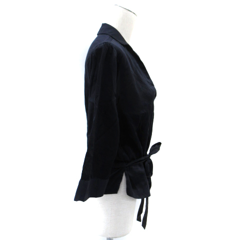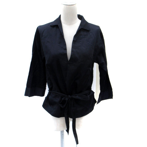 イエナ IENA シャツ ブラウス 七分袖 スキッパーカラー リボン シルク 紺 ネイビー /SM32 レディース