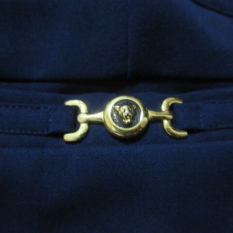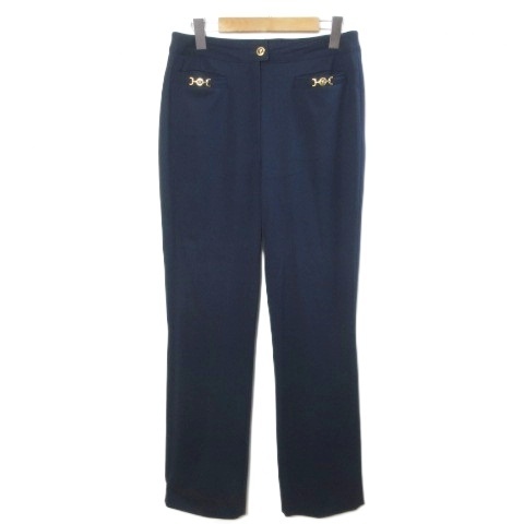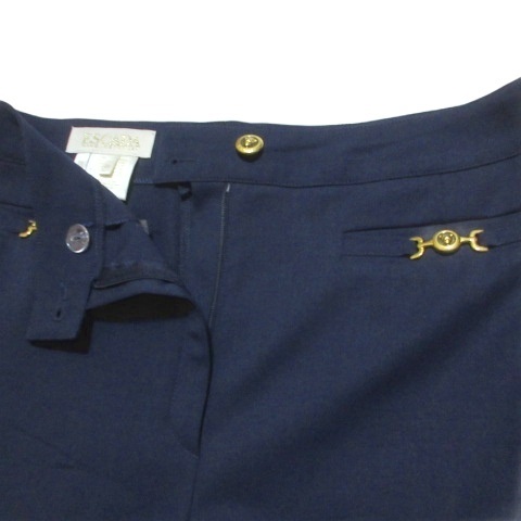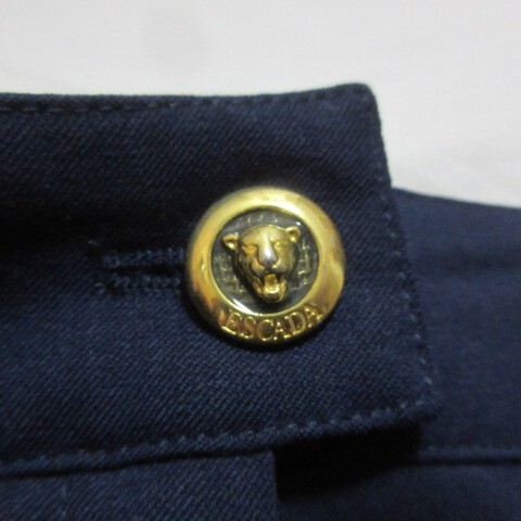 エスカーダ MARGARETHA LEY ヴィンテージ パンツ ストレッチ ゴールド金具 バージンウール 38 日本サイズL相当 紺 ネイビー /X