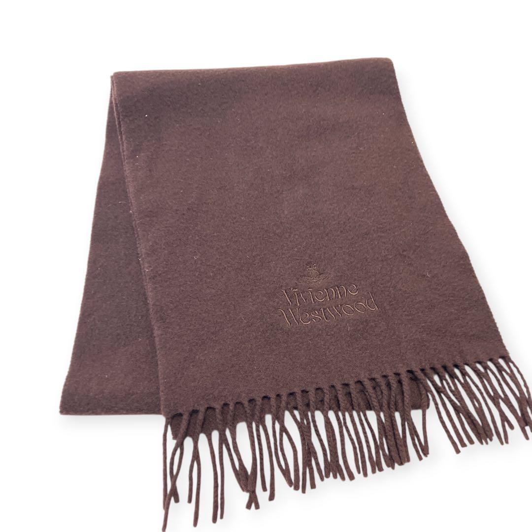 Vivienne Westwood ヴィヴィアンウエストウッド フリンジマフラー スカーフ ブラウン 茶 ロゴ ユニセックス MADE IN ITALY