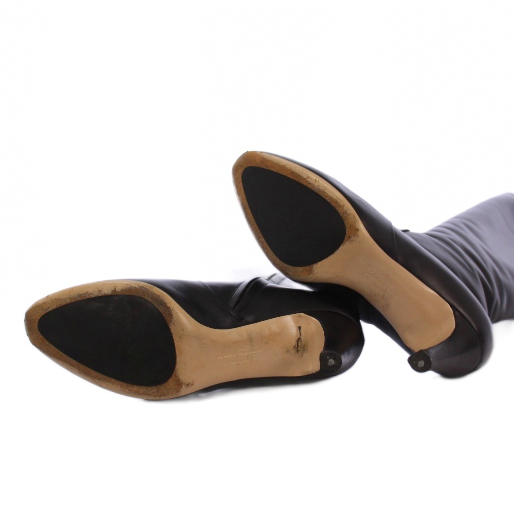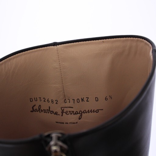 サルヴァトーレフェラガモ Salvatore Ferragamo FOLIBA ロングブーツ レザー ラウンドトゥ 6.5 黒 DU32682 /TK レディース