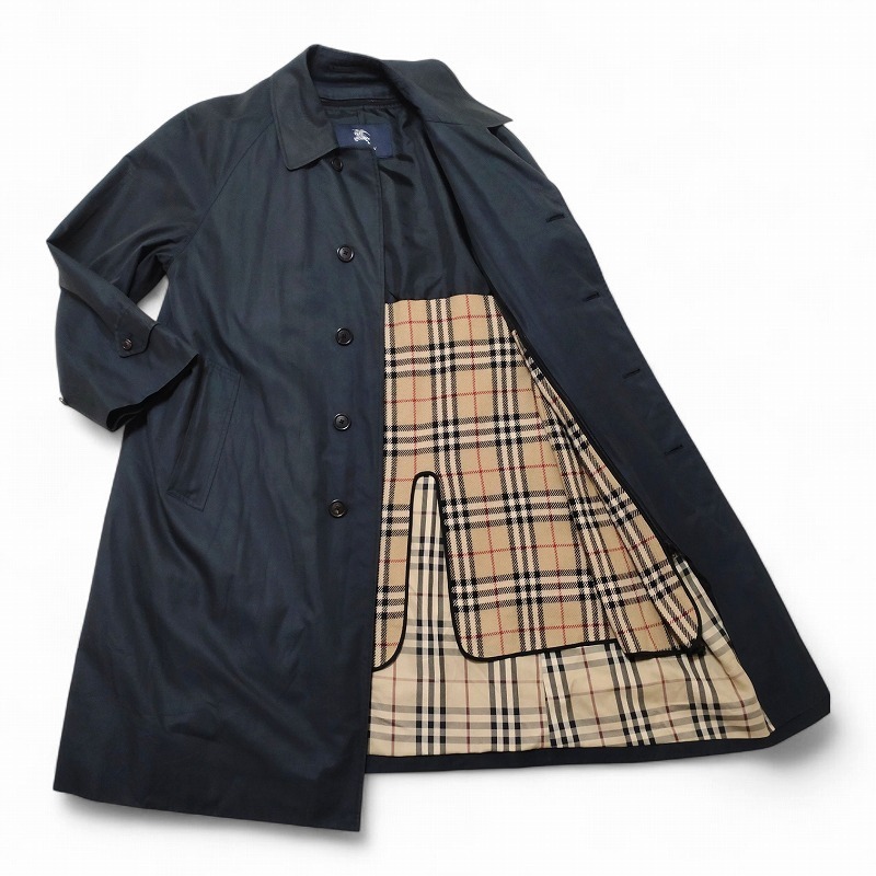 1円~ ■美品■ BURBERRY バーバリー ステンカラーコート バルマカーンコート ライナーカシミヤ混 ノバチェック 比翼仕立て 光沢