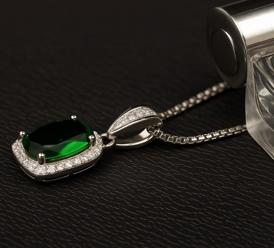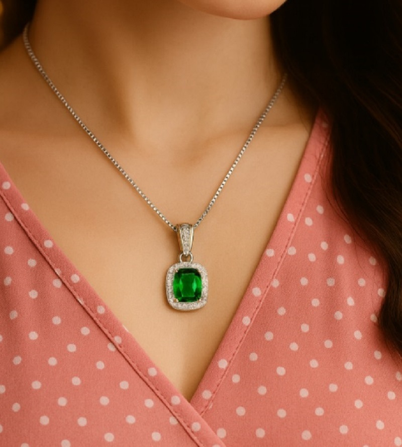 | 貴方の首元に、 5月の誕生石・エメラルドをペンダントにしました | |||||||