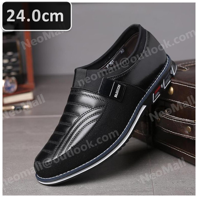 メンズ カジュアル スニーカー ブラック サイズ 24.0cm 革靴 靴 カジュアル 屈曲性 通勤 軽量 インポート品【n042】