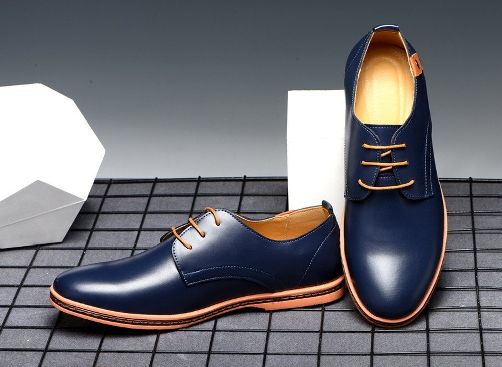 人気商品 ☆ メンズ ビジネス レザー シューズ ネイビー サイズ 25.0cm 革靴 靴 カジュアル 屈曲性 通勤 軽量 仕事 【610】