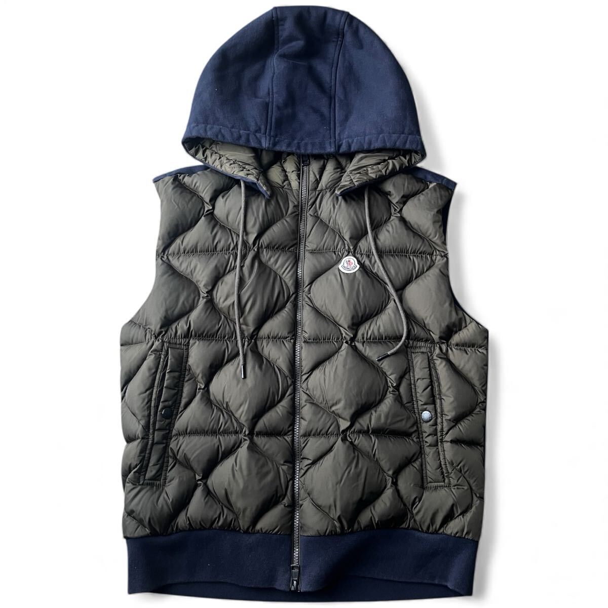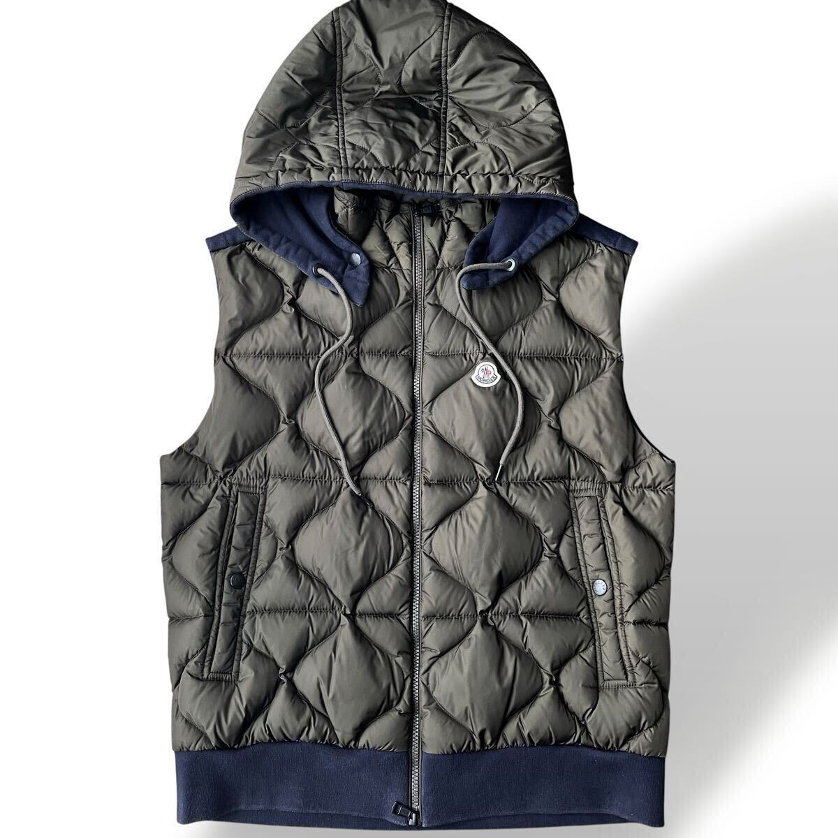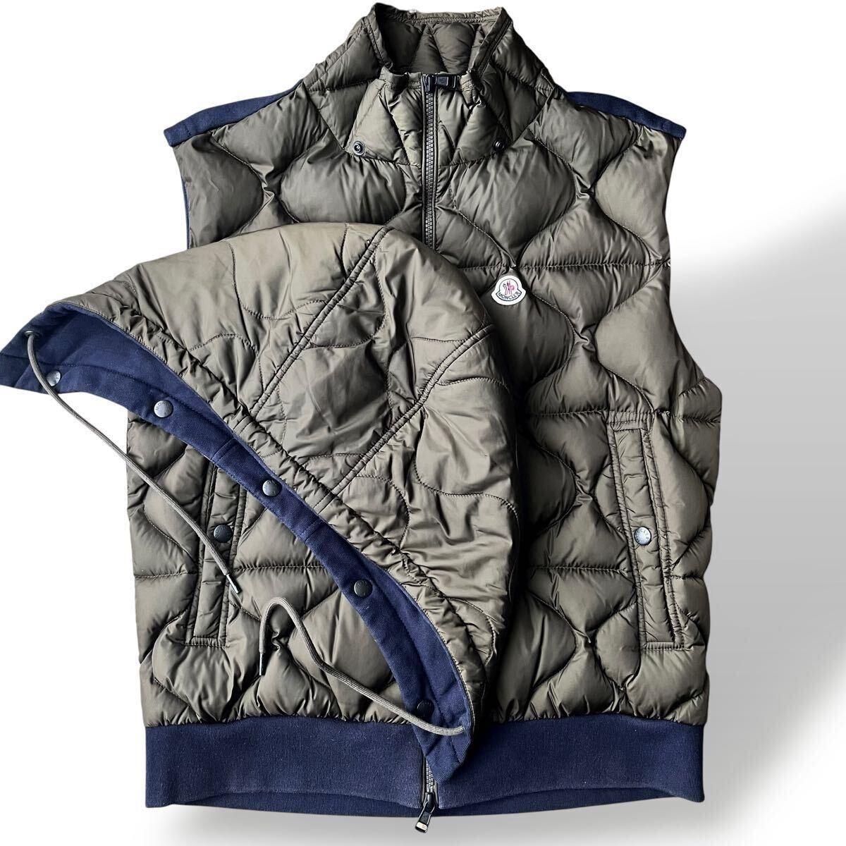 美品Lサイズ MONCLER モンクレール ダウンベスト キルティング MAGLIA GILET マグリアジレ 赤裏地 ワッペン フリース切替 フード着脱可