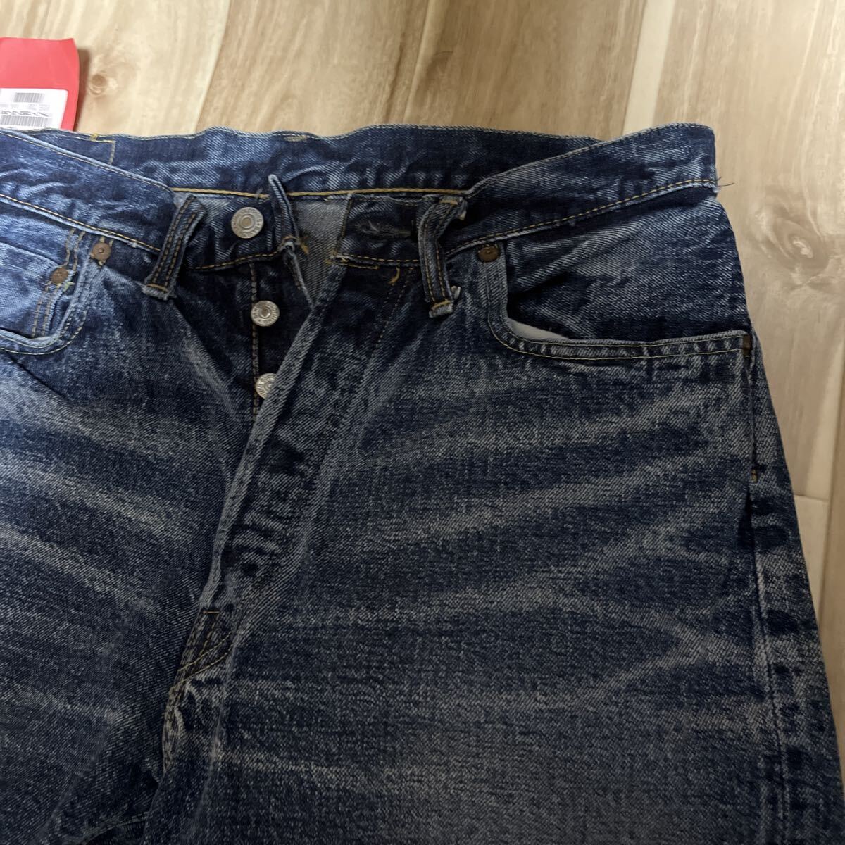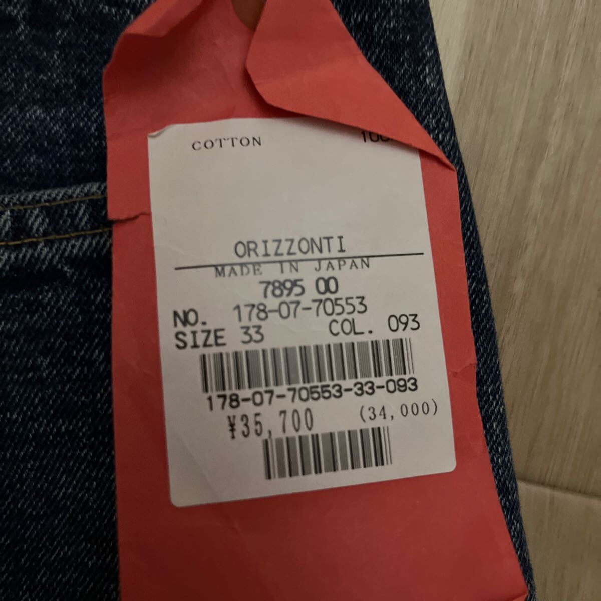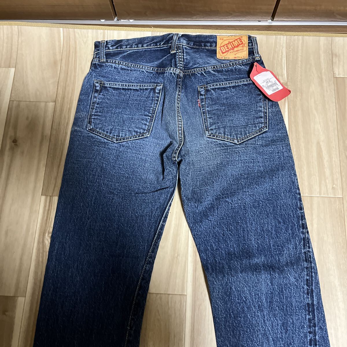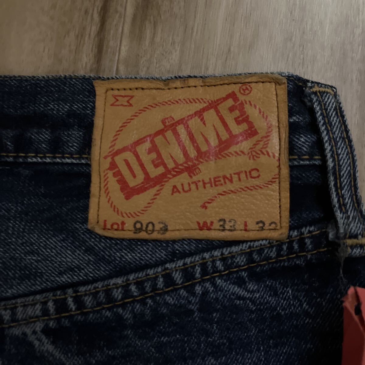 新品未使用タグ付きのドゥニーム(オリゾンティ時期)の903です。サイズ表記はW33、L33で、ウエスト82、股下86、腿幅28、裾幅21(全てセンチ)です。ヴィンテージ加工がされています。2000年代前半のものですので、プチヴィンテージかと思います。徐々に市場から無くなっていく前にお探しの方はいかがでしょうか。よろしくお願いします。