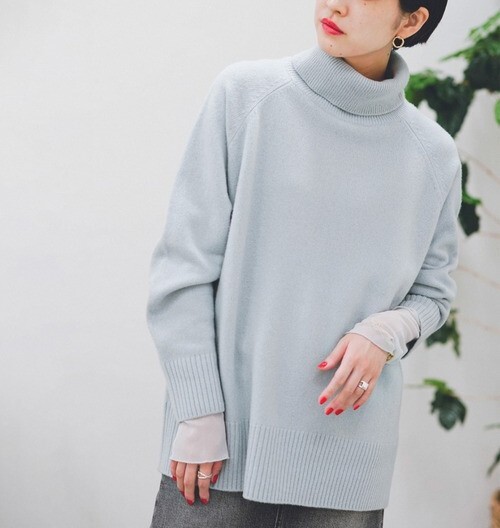 カシミヤ混の上質なウール素材を使用した贅沢なハイネックニット。