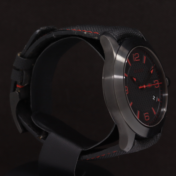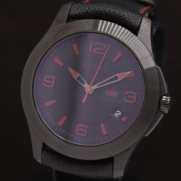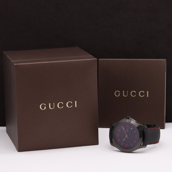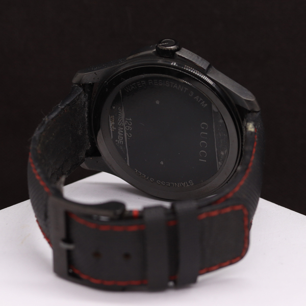 1円 保/箱付 稼働 グッチ Gタイムレス 126.2 12704253 QZ ブラック文字盤 メンズ 腕時計 0002200 11ERT MTY