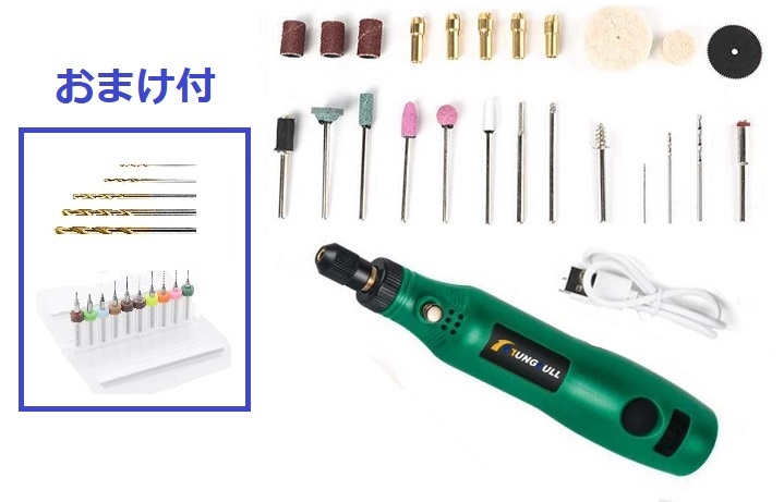 Ⅱ■ 華麗3点おまけ付 ミニルーター グリーン USB充電式 24+5+10個ビット付き ルーター 安全機能あります。