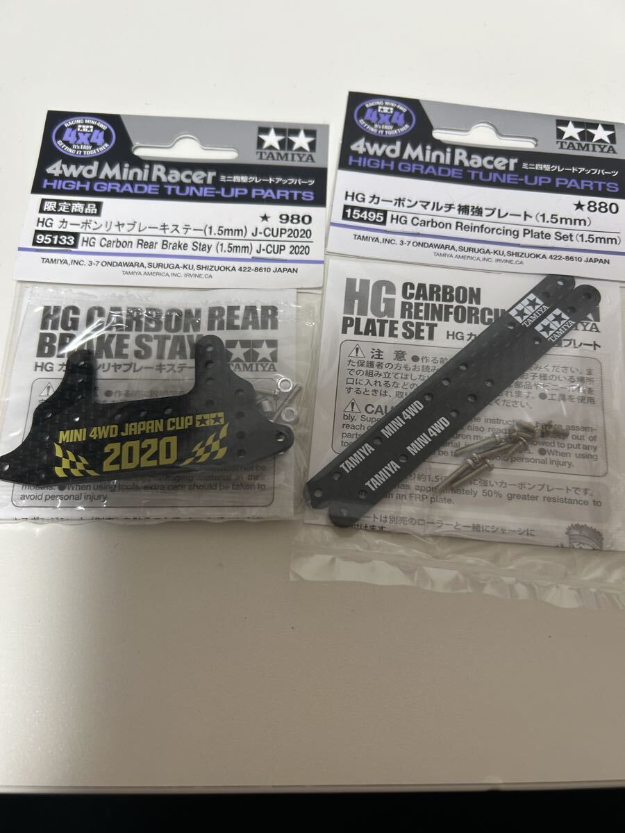 タミヤ ミニ四駆 カーボン2点セット カーボンリヤブレーキステー カーボンマルチ補強プレートになります。