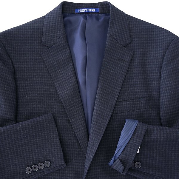 A7(普通体型のXLサイズ相当) 胸囲96 胴囲84 身長180 ※商品に記載されたサイズ・寸法です※ 【ジャケット】 肩幅45cm 身幅53cm 袖丈63.5cm 着丈74cm 【スラックス】 ウエスト86cm(内回り1周) 股上26cm 股下95.5cm 裾幅19cm 腿幅29cm(股下10cm部分) 【上衣】 表地:毛50% ポリエステル50% 胴裏:ポリエステル100% 袖裏:ポリエステル100% 【下衣】 表地:毛67% ポリエステル33% 膝裏:ポリエステル100% ネイビー系 |
