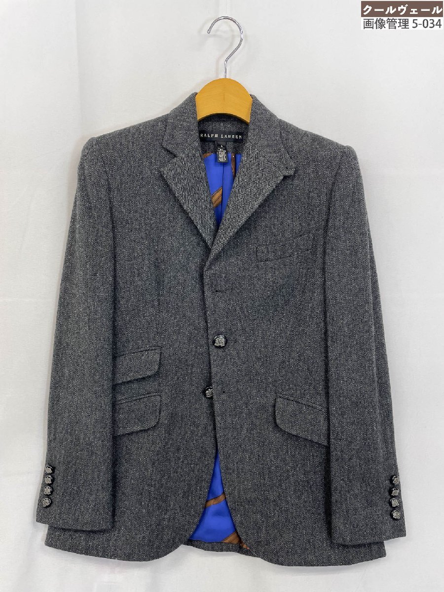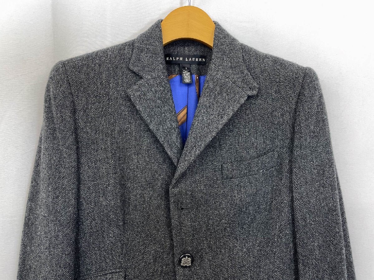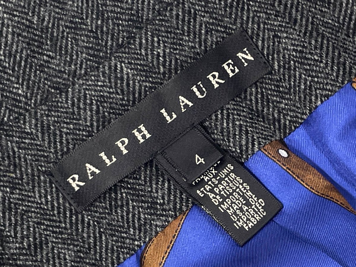 超美品【ラルフローレンブラックレーベル】11K62PZ 3B ヘリンボーン柄 ジャケット (レディース) 4 グレー系 裏地シルク USA製 ◇32LJ1405◇