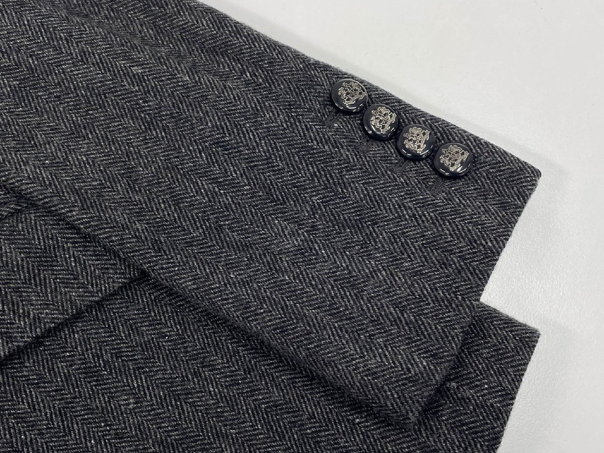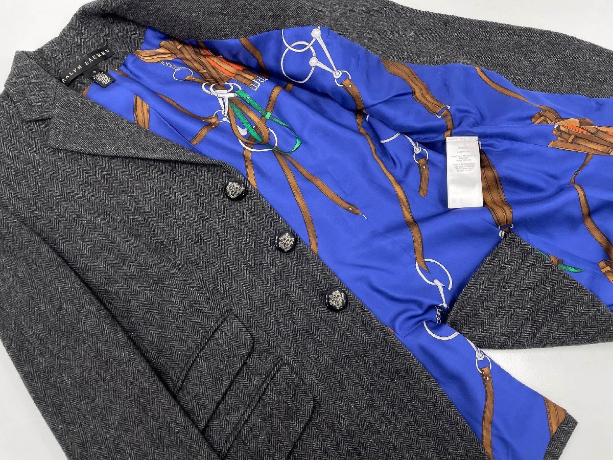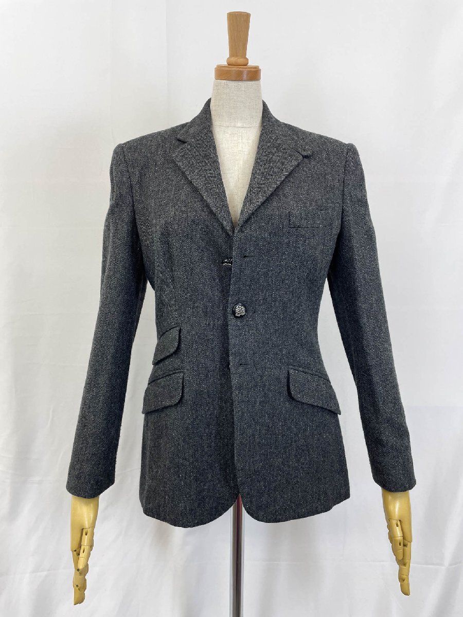 超美品【ラルフローレンブラックレーベル】11K62PZ 3B ヘリンボーン柄 ジャケット (レディース) 4 グレー系 裏地シルク USA製 ◇32LJ1405◇
