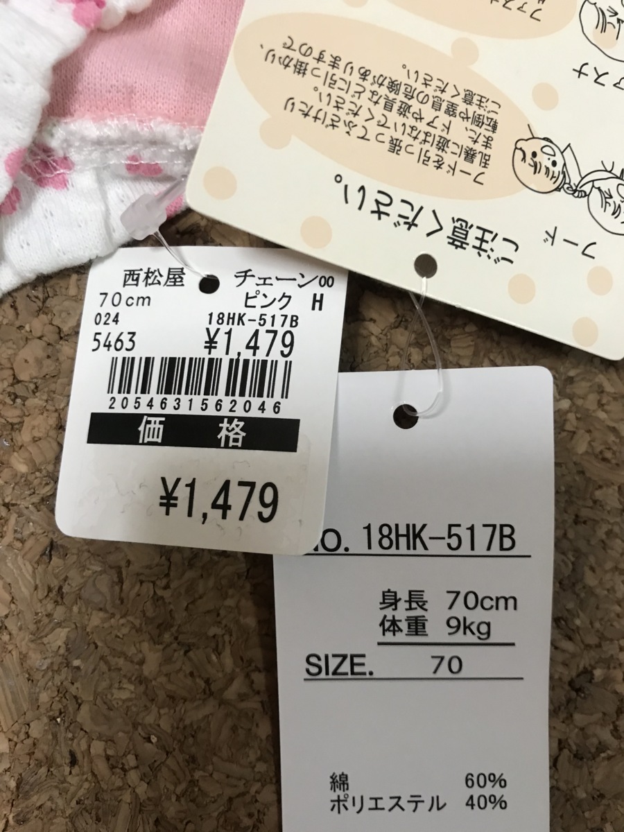 ・西松屋ベビー ・イオン トップバリュー ・千趣会 ・エンゼリーベ ・アンリコ ・フェリシモ ・ディズニー品 |