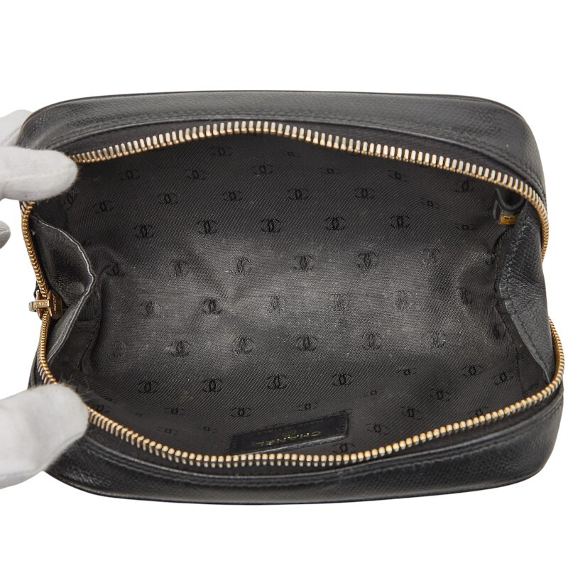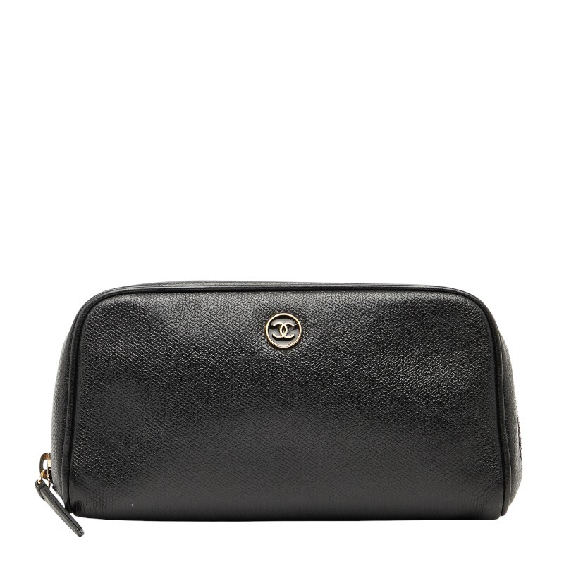 シャネル ココマーク ポーチ ブラック レザー レディース CHANEL 【中古】