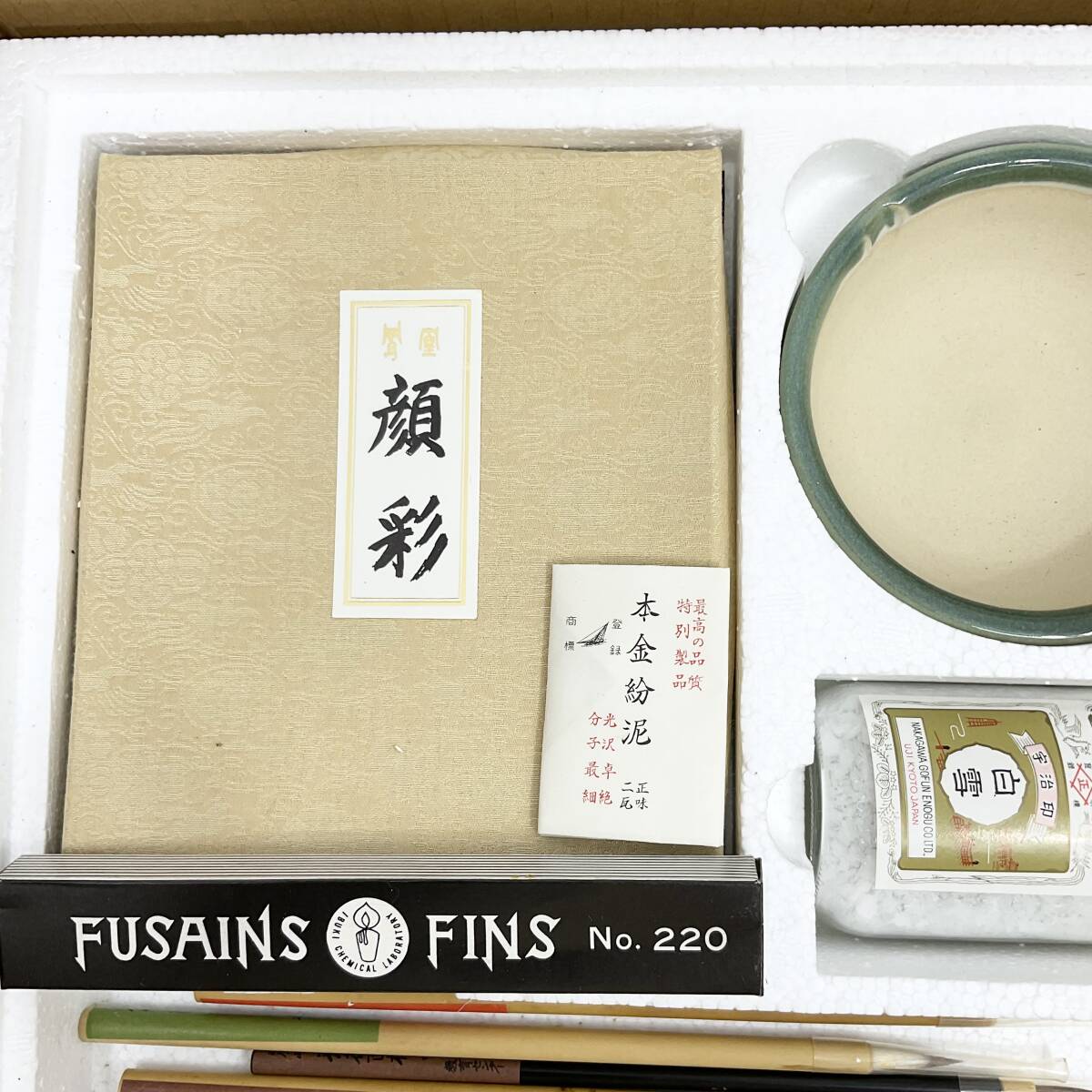 日本美術教育センター 日本画講座 画材セット 三千本膠 本金粉泥 筆 ハケ 画用木炭 絵の具 美術 (C281)