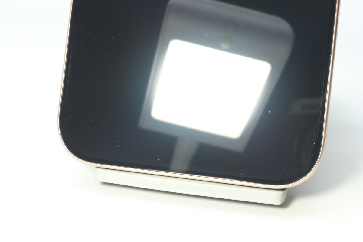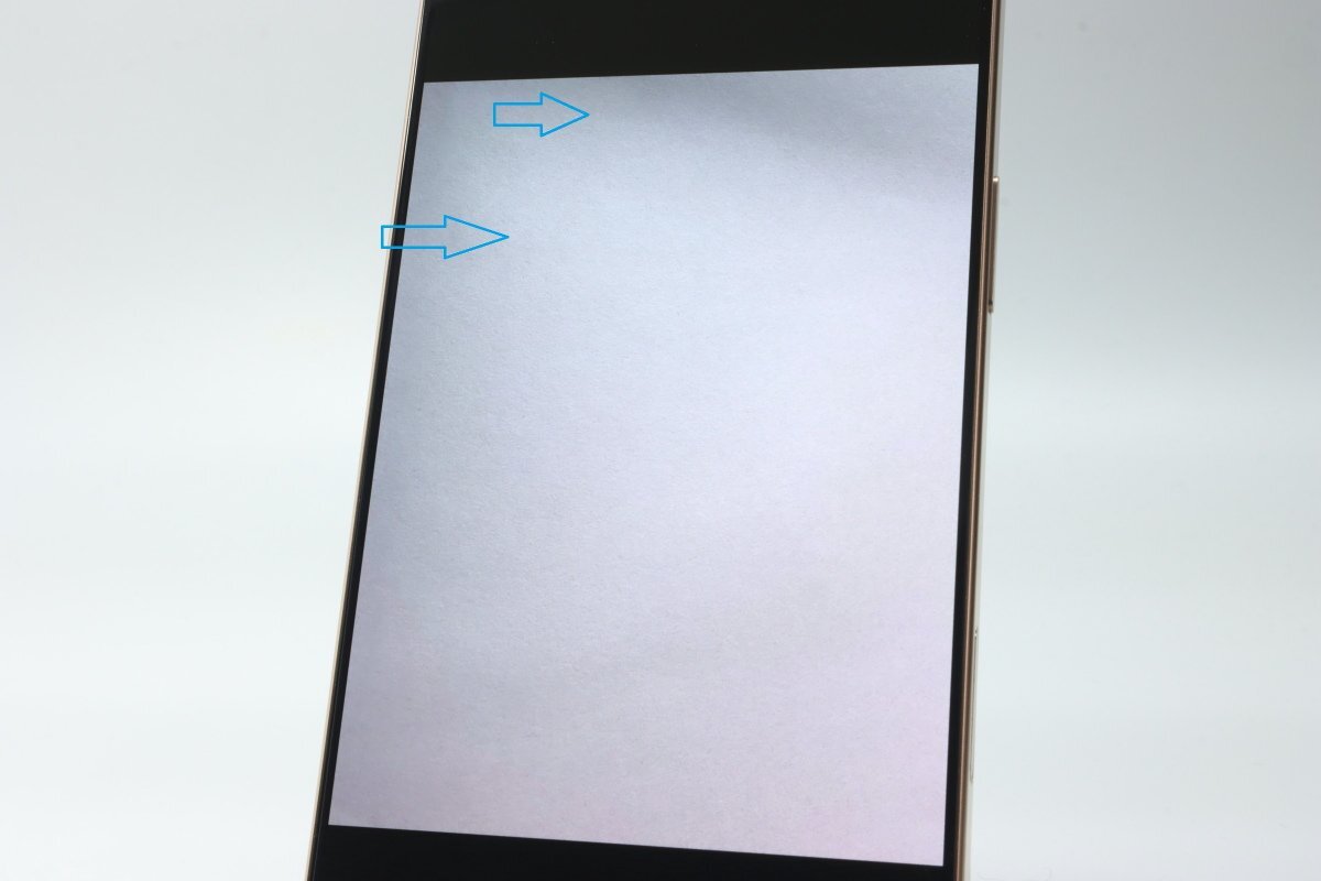 ・インカメラ撮影時、写真ともに横(青矢印)に光のラインが写り込みます(写真6 ※インカメラで撮影した写真を撮影してます)
