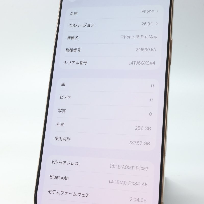■機種 : iPhone16 Pro Max 256GB デザートチタニウム A3295 3N530J/A