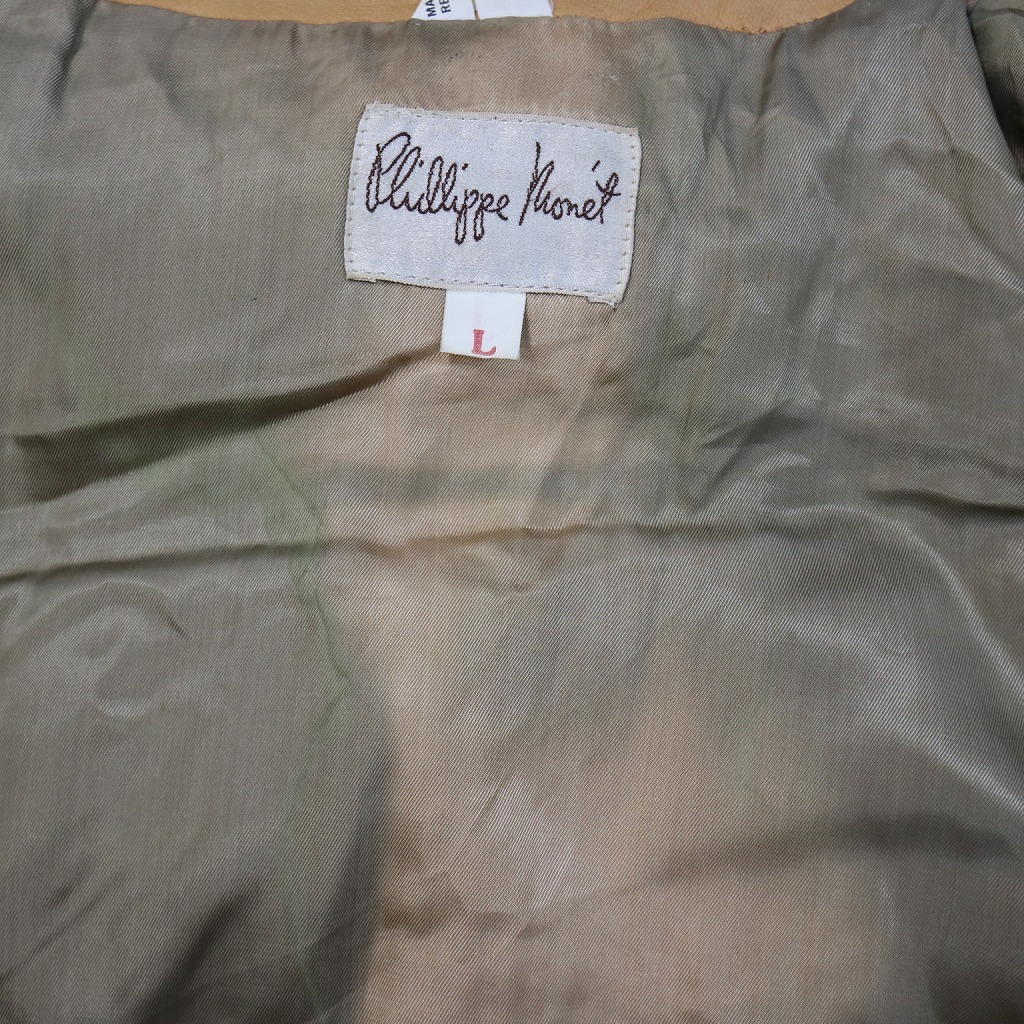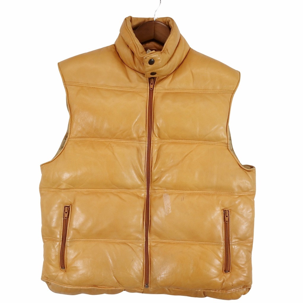 | 【商品管理番号】 O8371 【サイズ】 L 【実寸サイズ】 肩幅:約47cm 着丈:約66cm 身幅:約58cm 【主な素材】 表地 : レザー 中綿 : 55214 【色】 ブラウン 【仕様】 80年代 【状態】 汚れ:襟、腹部、背中、腰、裾 特記事項:色褪せ 裏地全体的に色褪せあり | |||