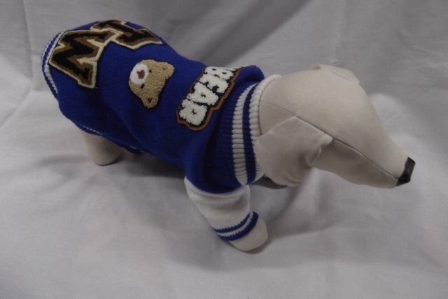 とってもかっこいい、ニット スタジアムジャンパーです。前開きですから着せやすいです。