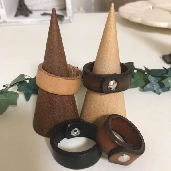 ・9ミリ幅のイタリー製レザーをカシメで留めたハンドメイドのレザーリングです。