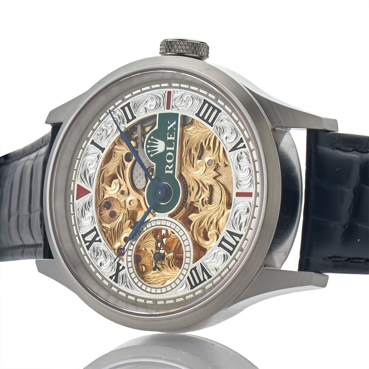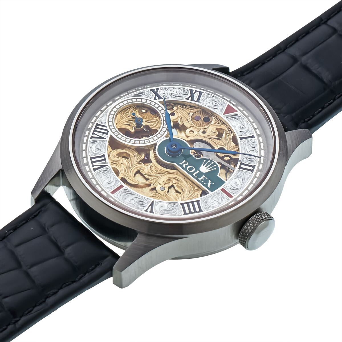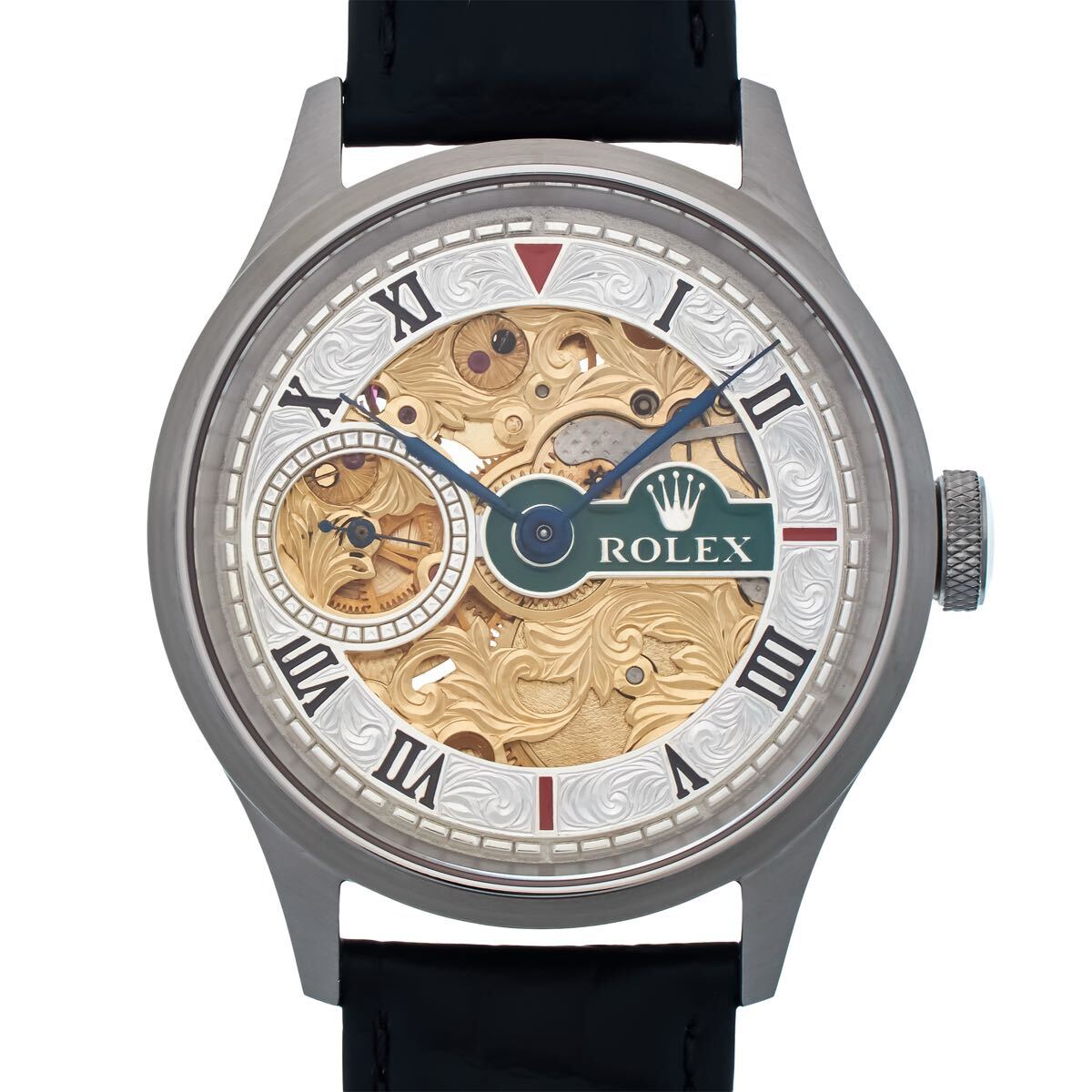 こちらの商品はROLEXのムーブメント(懐中時計)に装飾を施し、ヨーロッパのアンティーク時計店が新たに製作したケース・文字盤・バンドを組み合わせた腕時計です。このエレガントな腕時計は懐中時計をアレンジして作られました。アンティーク時計店の専門家チームは、それぞれのムーブメントにアプローチする新しい方法を見つけ、このアンティーク時計に新しい命を吹き込みました。ヴィンテージスタイルとモダンスタイルの理想的な組み合わせです。最高の品質とアンティークを評価する人にとっては完璧な逸品です。