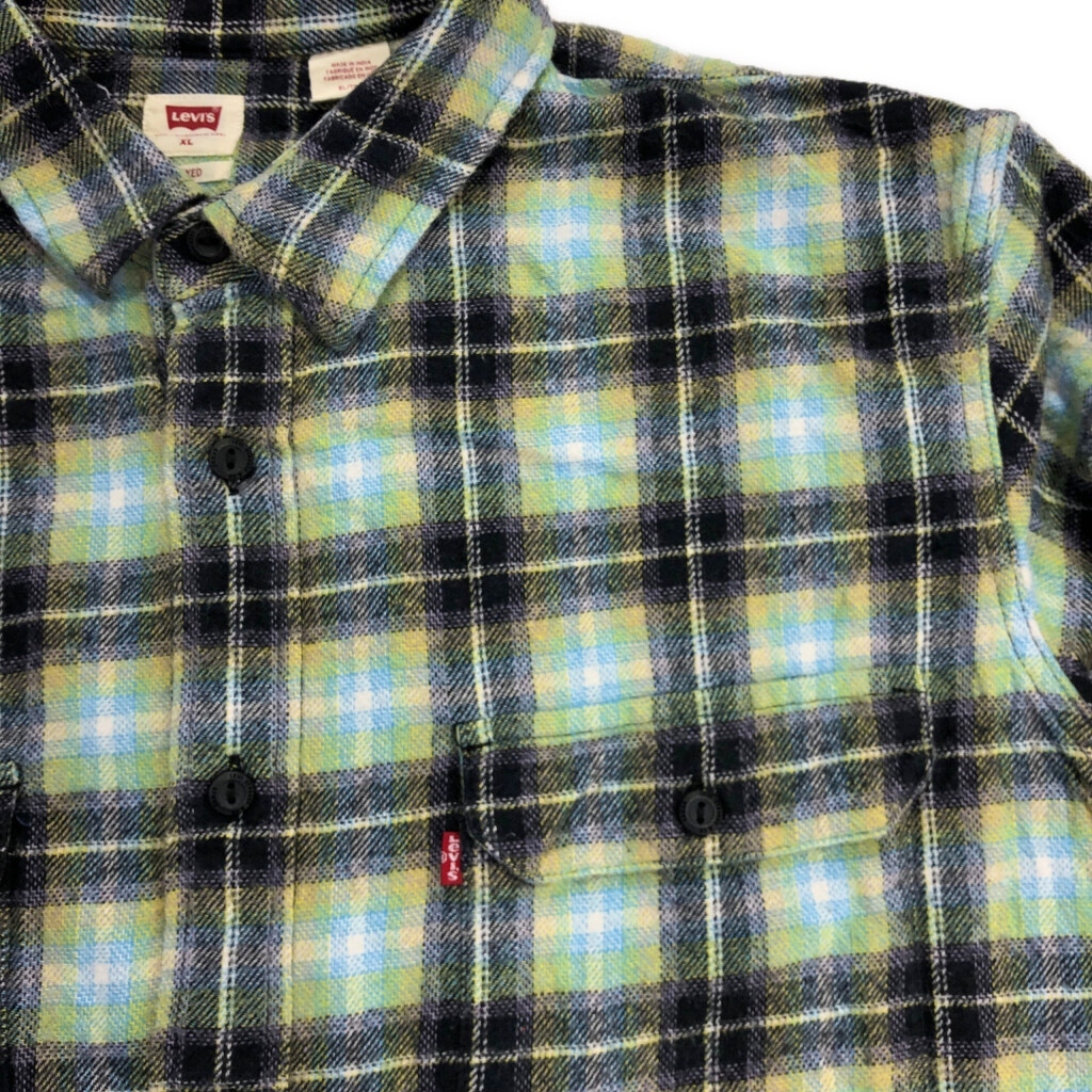 | 【商品管理番号】 U9700 【ブランド】 Levi's/リーバイス 【サイズ】 XL 【実寸サイズ】 肩幅:約52cm 着丈:約71cm 身幅:約65cm 袖丈:約58cm 【主な素材】 表地 : コットン 【色】 マルチカラー 【仕様】 チェック 【状態】 破れ:腹部、背中 | |||