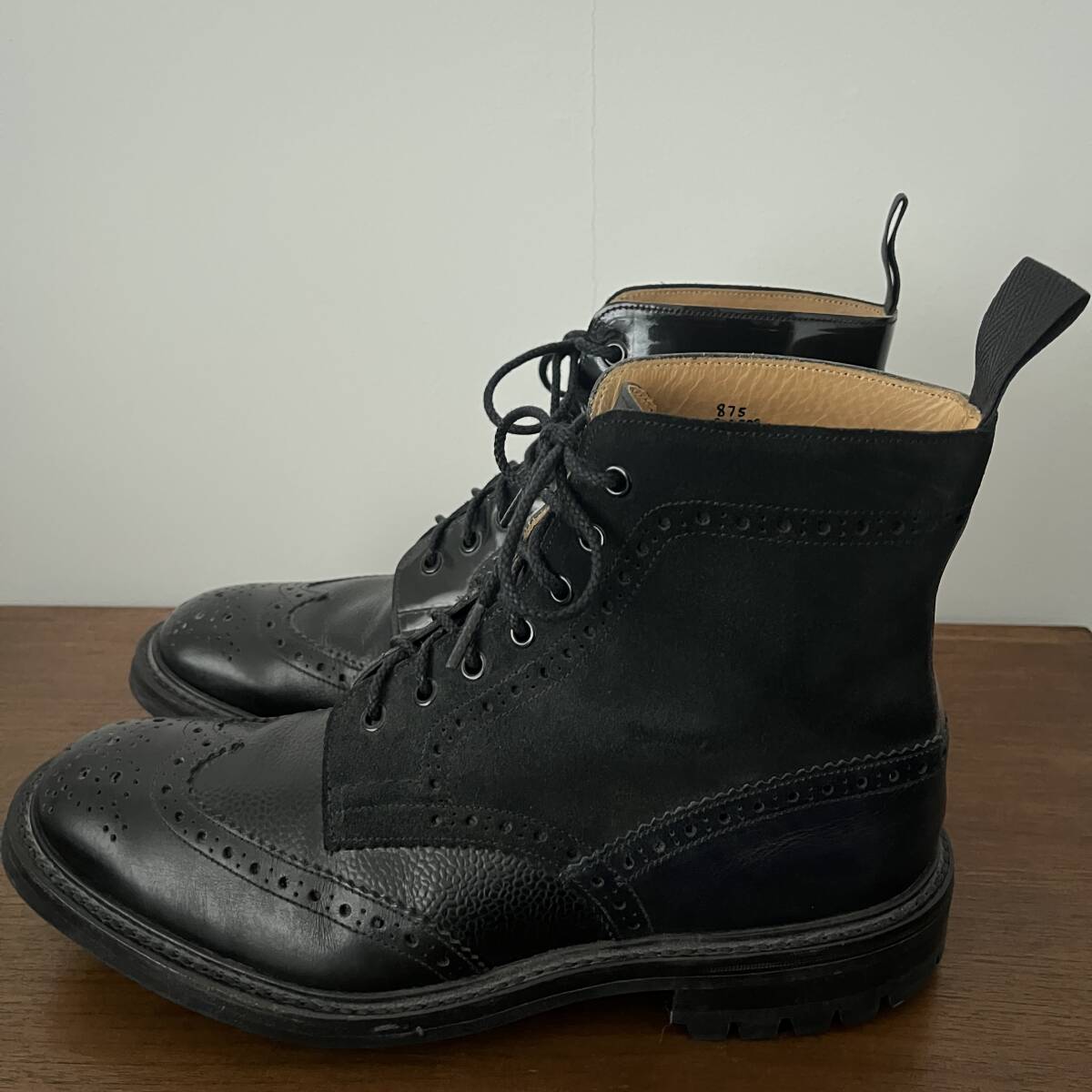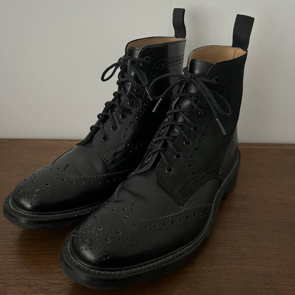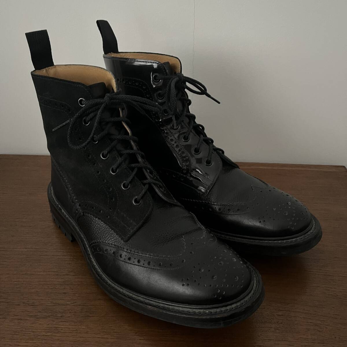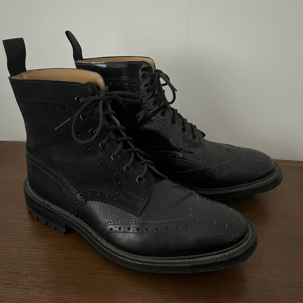★送料込み 英国製 Tricker's トリッカーズ ネペンテス別注 ブラック マルチトーン ウィングチップ カントリーブーツ UK9.5 28〜28.5cm★